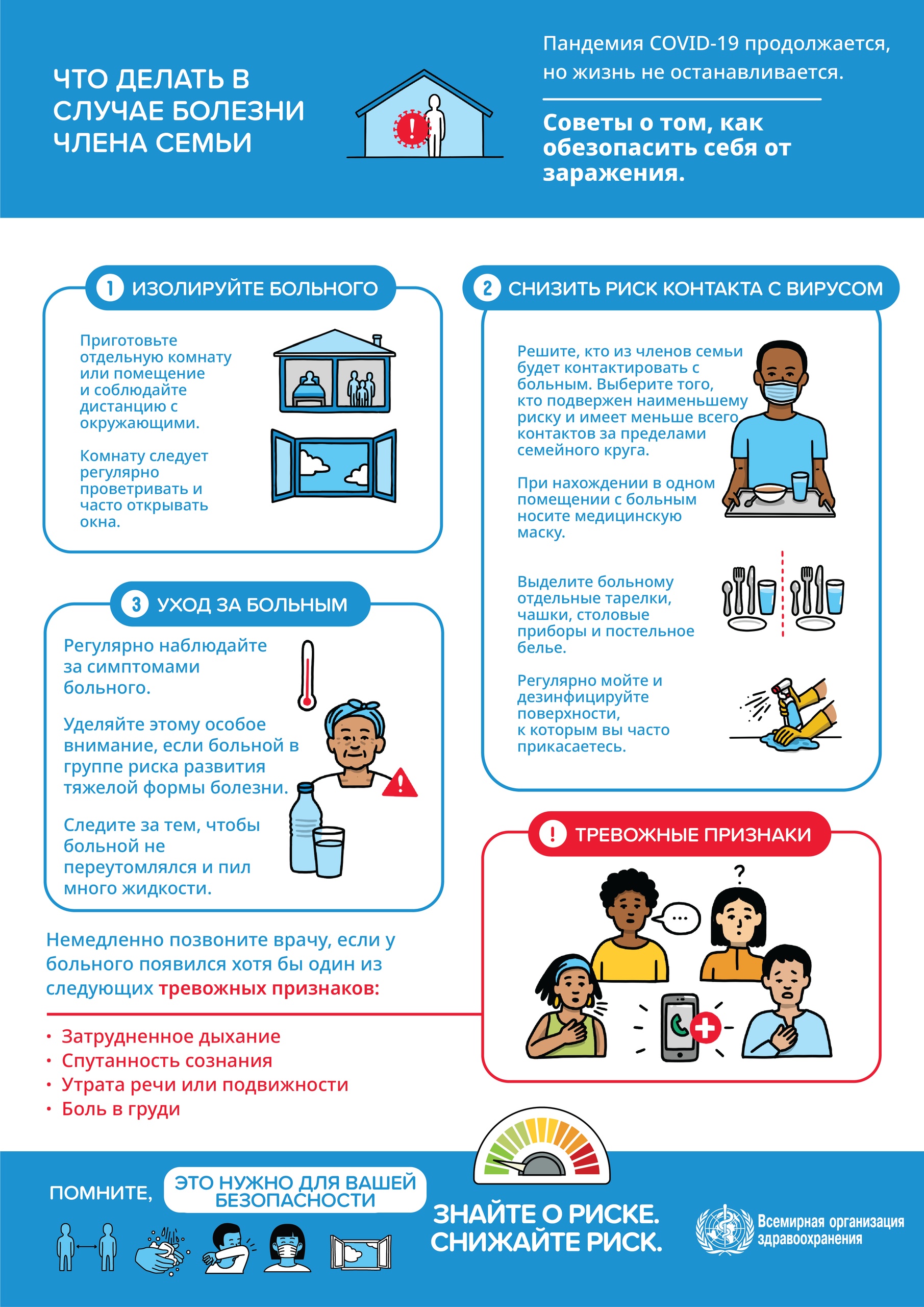 При первых симптомах заболевания, будь то ОРВИ, коронавирус, грипп, даже если речь только о насморке, нужно остаться дома. Это необходимо, прежде всего, чтобы вовремя начать лечение и дать организму возможность отдохнуть и восстановиться, а также, чтобы не стать источником заражения для окружающих.
