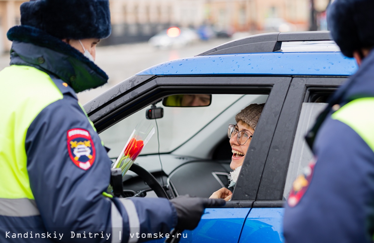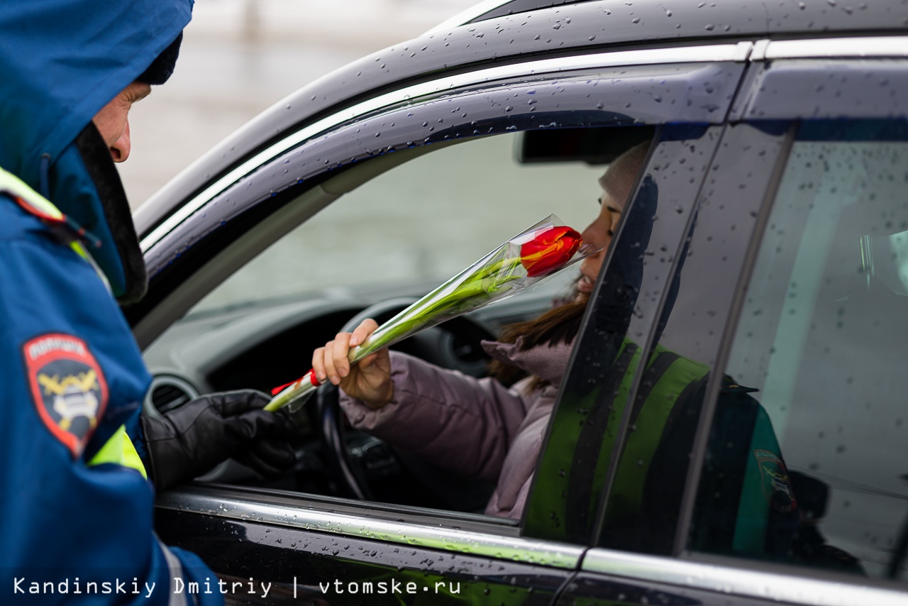 Тюльпаны вместо проверки документов: ГИБДД поздравила томских автоледи с 8 Марта