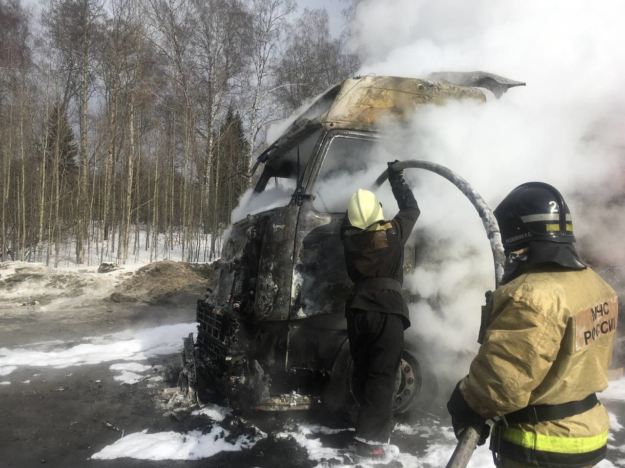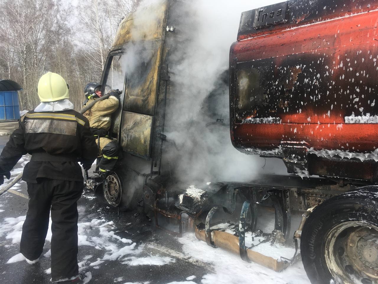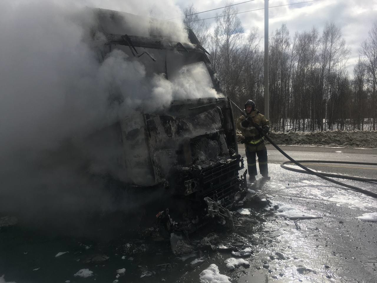 «На момент прибытия первого подразделения огнем была охвачена кабина автомобиля Volvo», — рассказали в ведомстве.