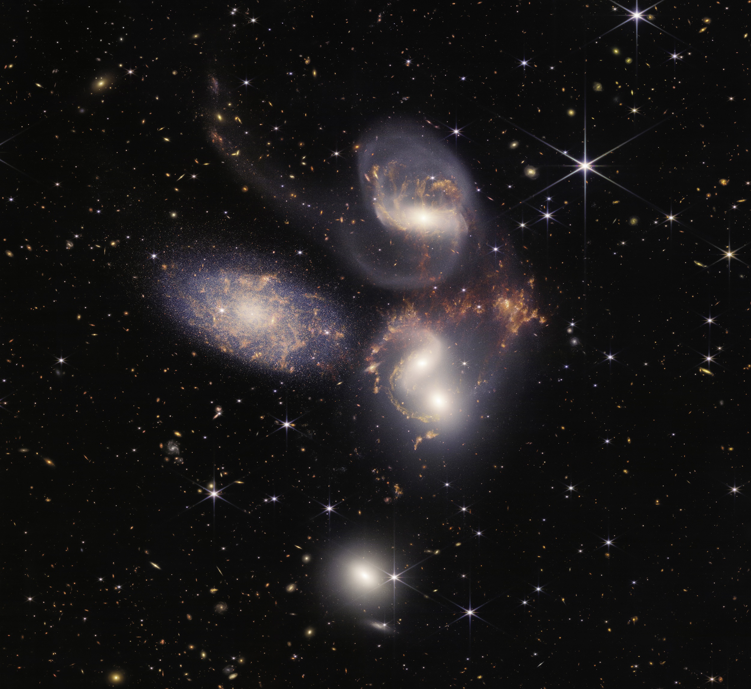«Эта огромная мозаика — самое большое изображение «Джеймса Уэбба» на сегодняшний день. Оно содержит более 150 миллионов пикселей и состоит из почти тысячи отдельных файлов изображений. Полученная информация позволяет по-новому взглянуть на то, как галактические взаимодействия могли влиять на эволюцию галактик в ранней Вселенной», — отметили в NASA.