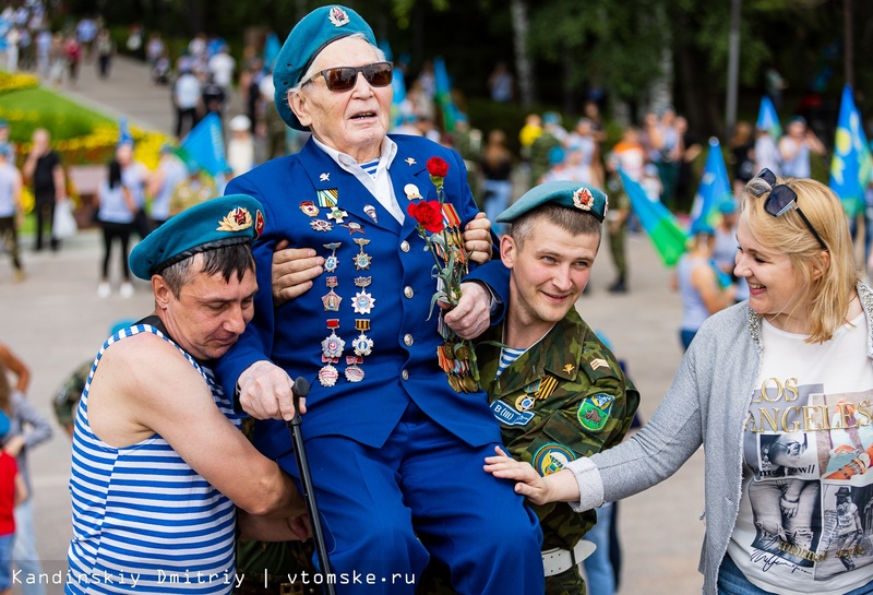 Томские десантники 2 августа отметили День Воздушно-десантных войск шествием по проспекту Ленина. В Лагерном саду десантники возложили цветы к мемориалу.