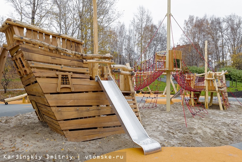 Подрядчик завершил благоустройство новой детской площадки на территории Буфф-сада Томска. Здесь появилось специальное резиновое покрытие, есть зоны с песком. Центральным элементом является деревянный корабль с канатами, по которым дети смогут забираться наверх. Также на площадке установили новую карусель, качели, батут, песочный экскаватор, музыкальную панель, аксессуары для ландшафта.