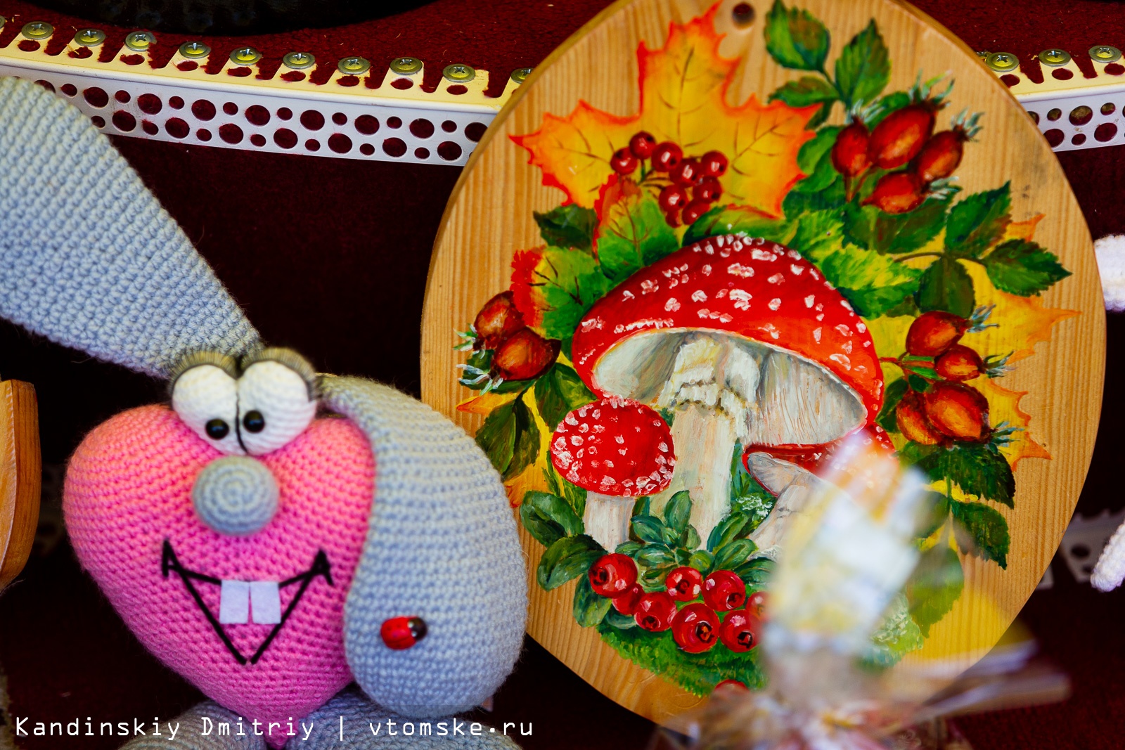 «У нас здесь выставка декоративно-прикладного творчества наших бакчарцев, — отмечает жительница Бакчарского района Людмила и показывает выставку. — Все они делают своими руками, поэтому мы с гордостью участвуем в выставке и с удовольствием делимся с томичами своим искусством».