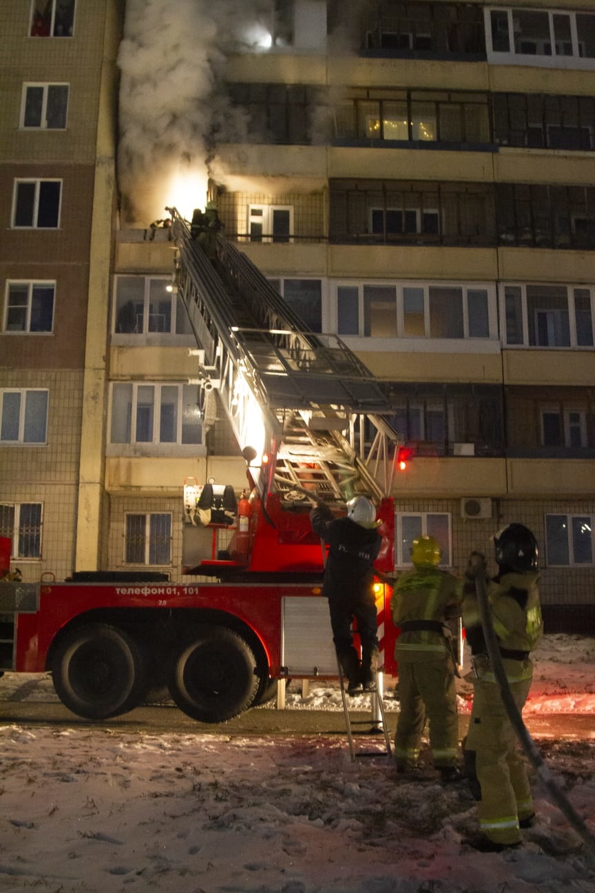 Пожарные при помощи спасательных устройств спасли из подъезда, в котором горела квартира, 50 человек. Из них семеро детей.