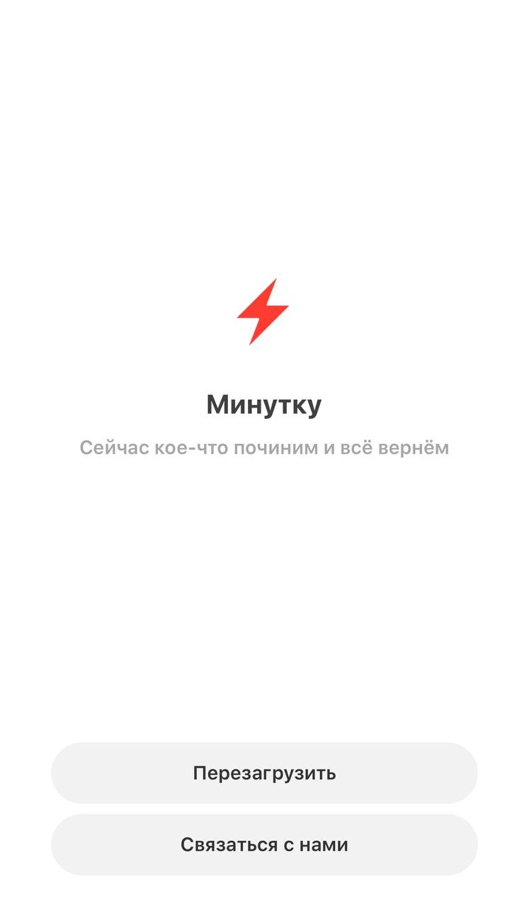 При попытке войти в приложение появляется уведомление с текстом: «Минутку. Сейчас кое-что починим и все вернем».
