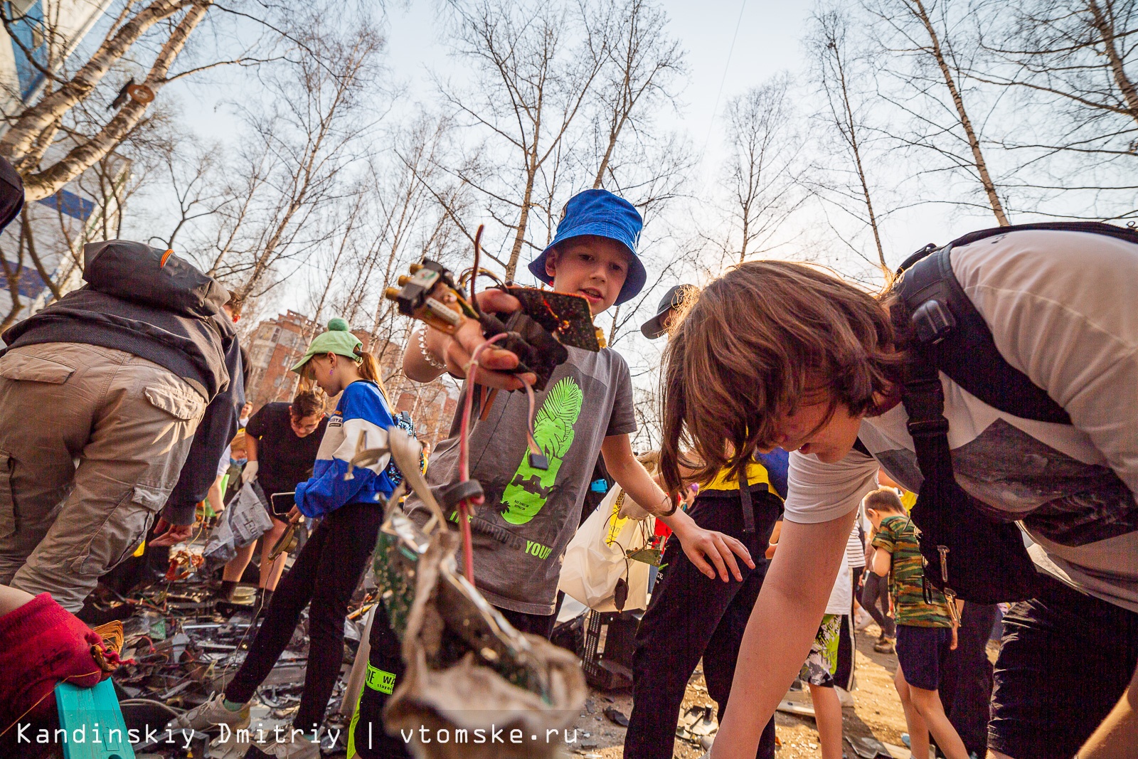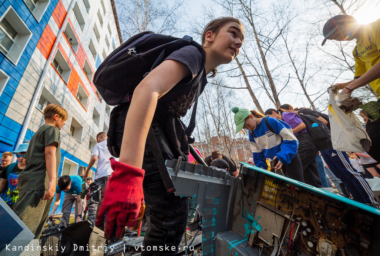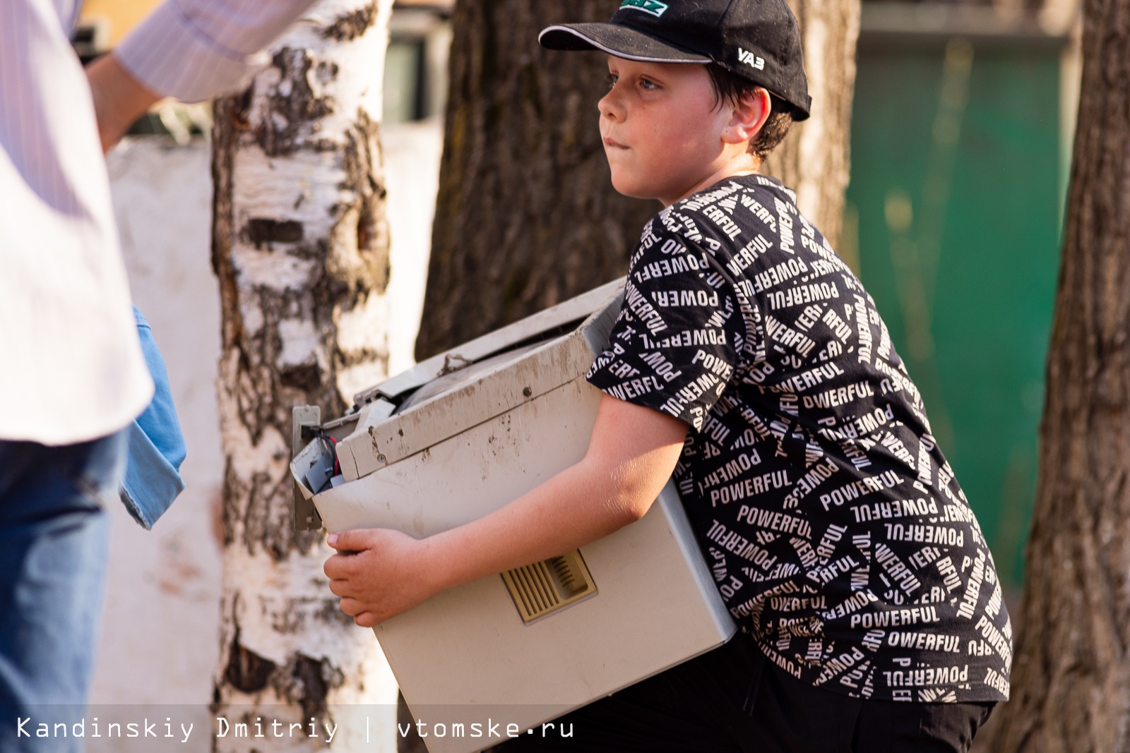 В этом году из окон выбросили ламповые телевизоры, компьютеры, мониторы. Традиционно это шоу привлекает несколько десятков томичей, много детей, которые с интересом наблюдают за летящей техникой.