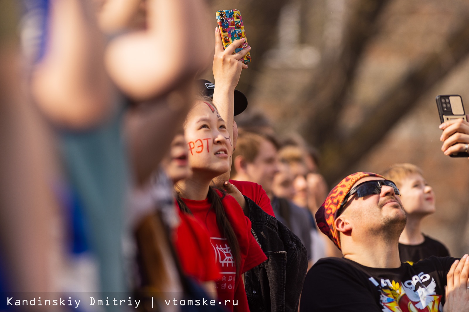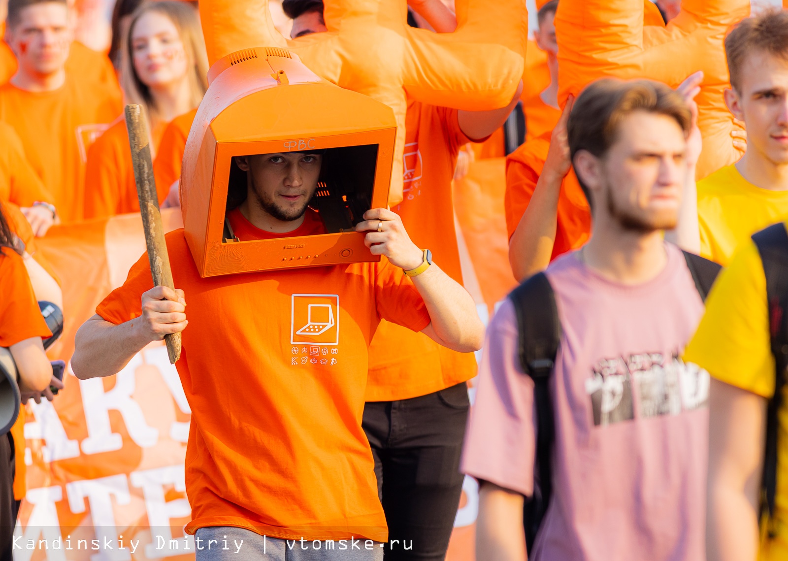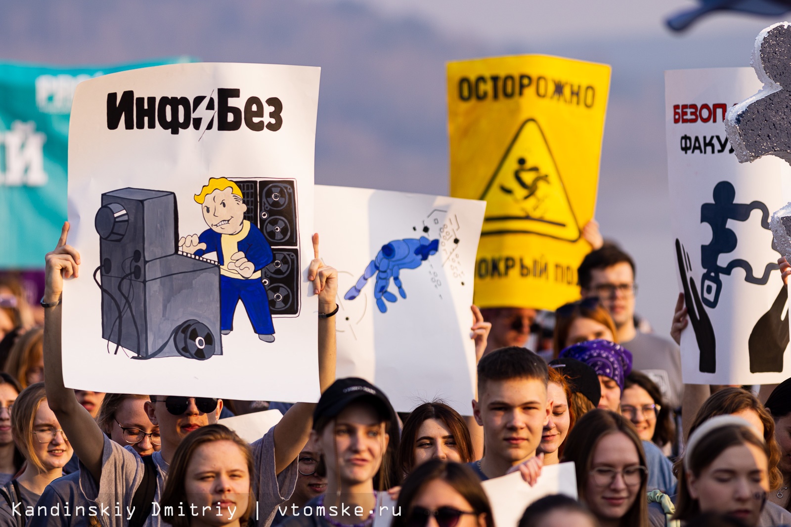 Большого шествия по улицам города от ТУСУРа в этот раз снова не было. Администрация не согласовала мероприятие на основании предписания органов безопасности. Однако, как и в прошлом году, вуз провел мини-шествие — парад факультетов на нижней террасе Лагерного сада.