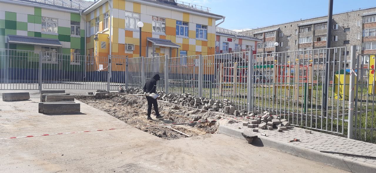 Асфальт провалился у нового детсада в Томске. Подрядчик ведет ремонт