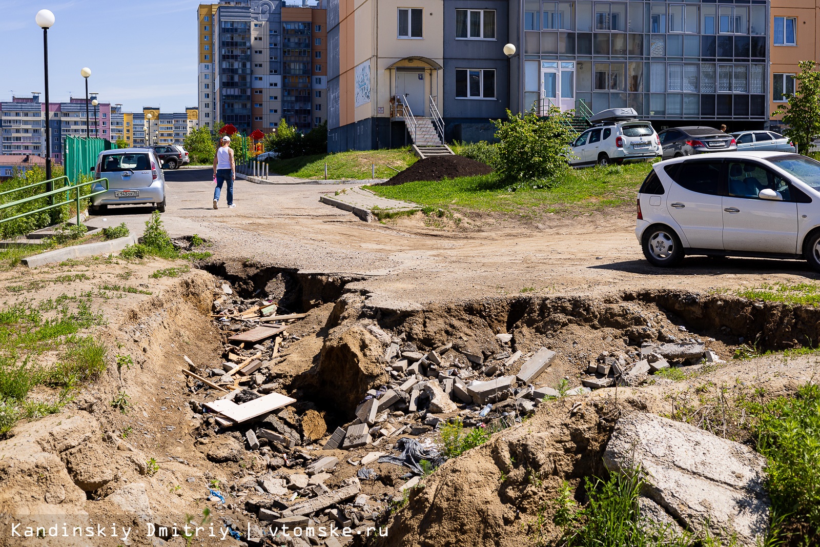 «Строители сделали технологический проезд (от улицы Энтузиастов до Ковалева, 30), положив бетонные плиты, чтобы грузовики по ним ездили и не портили основные дороги. В ТДСК говорили, что после всех работ заасфальтируют дорогу, но в итоге ничего не сделали. А у города денег нет. Прошел год, два, плиты начало подмывать: они лежали на спуске, земля под ними не была утрамбована. В итоге плиты начали проваливаться, на что стали жаловаться люди, в ТДСК решили забрать плиты. Когда их подняли — вскрылся провал. Со временем он начал увеличиваться, потихоньку подходит к домам», — поясняет томич.
