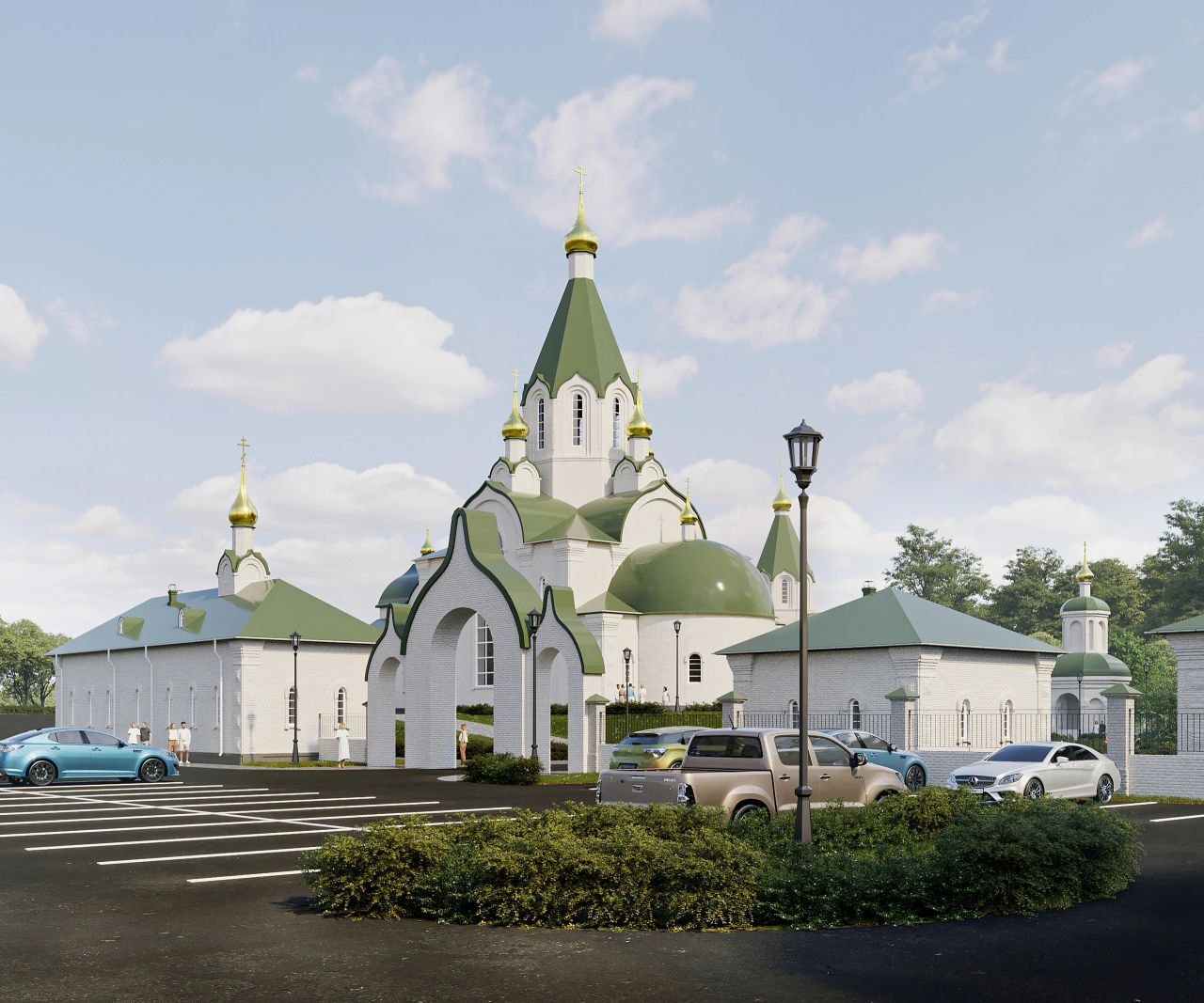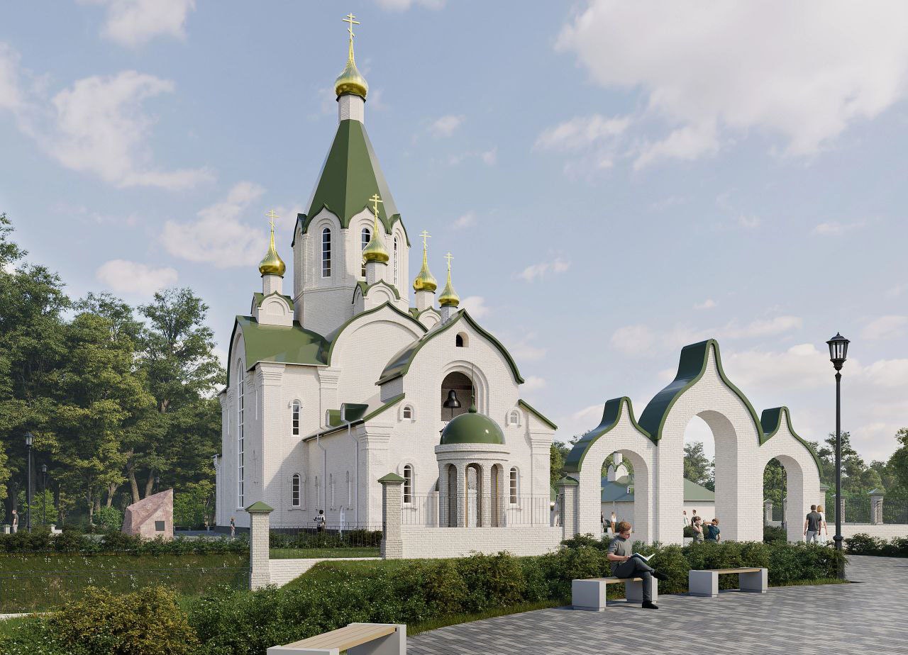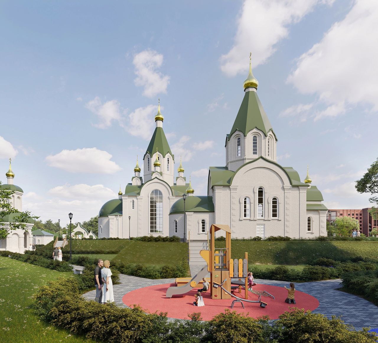 Епархия опубликовала визуализацию будущего храмового комплекса, который планируют возвести вблизи микрорайона Левобережный Life под Томском.