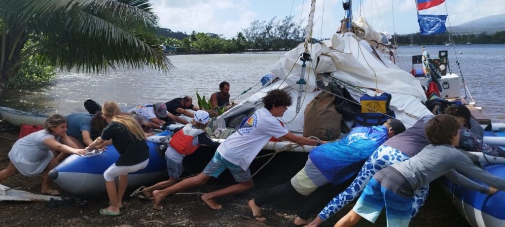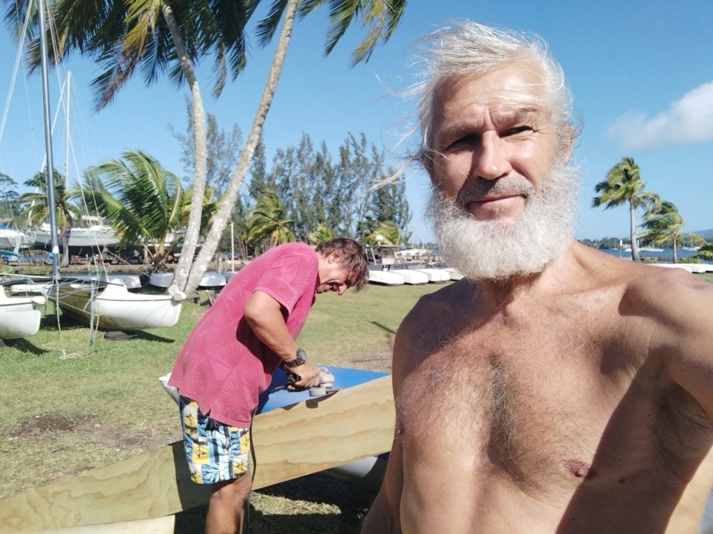 С острова Таити экспедиция стартовала в обновленном составе — руководитель Евгений Ковалевский, капитан катамарана Станислав Березкин и временный член экипажа француз Винсент.