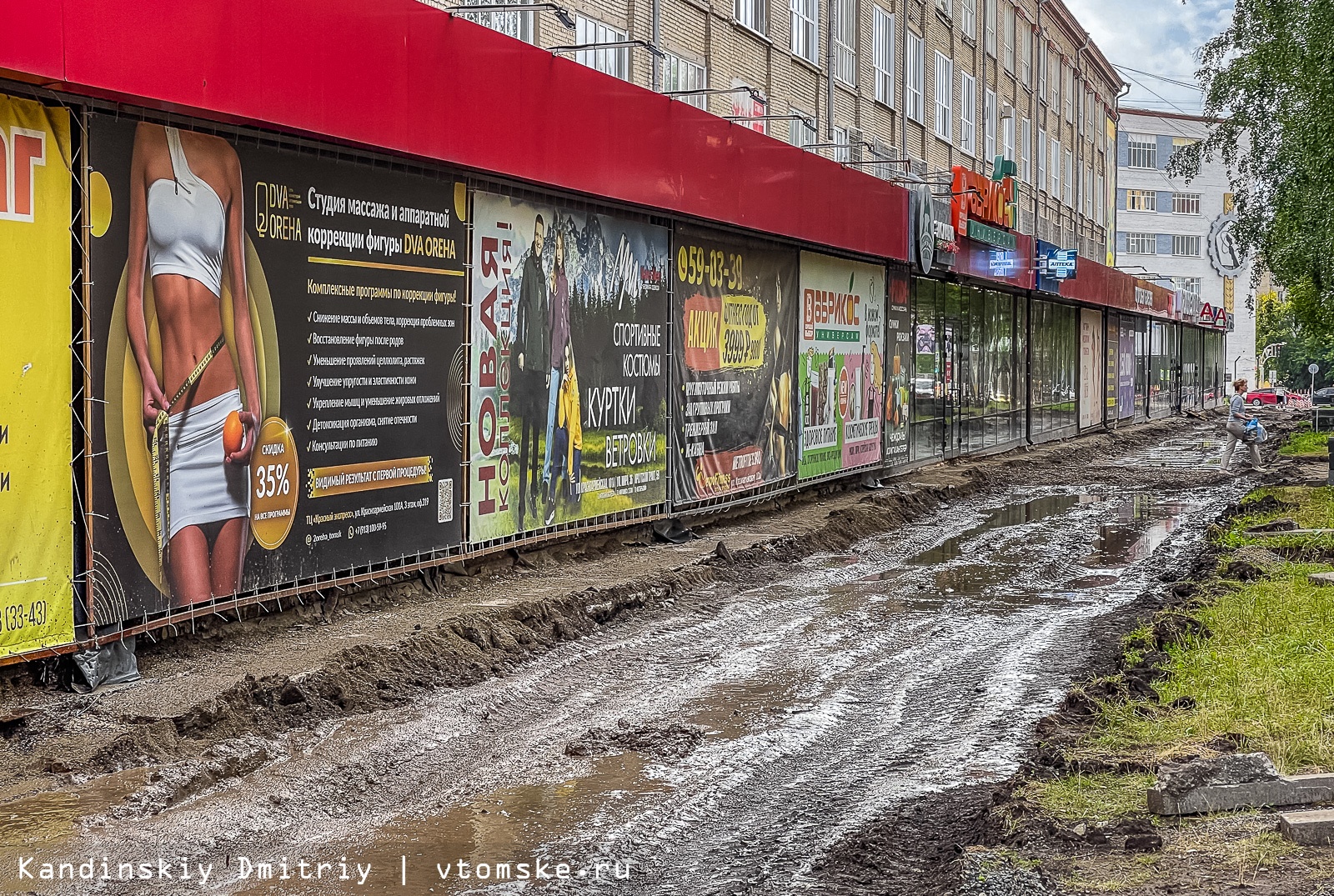 Большой объем работ был запланирован на улице Красноармейской. Сюда подрядчик — Томская строительная компания — зашел в мае. Стоимость контракта — 157 миллионов рублей. В перечень работ входит ремонт проезжей части, тротуаров, замена люков, благоустройство газонов. И.о. заместителя мэра по благоустройству Николай Глебович рассказал, что по контракту проезжая часть должна быть готова к 30 августа, а тротуары — к 30 сентября.