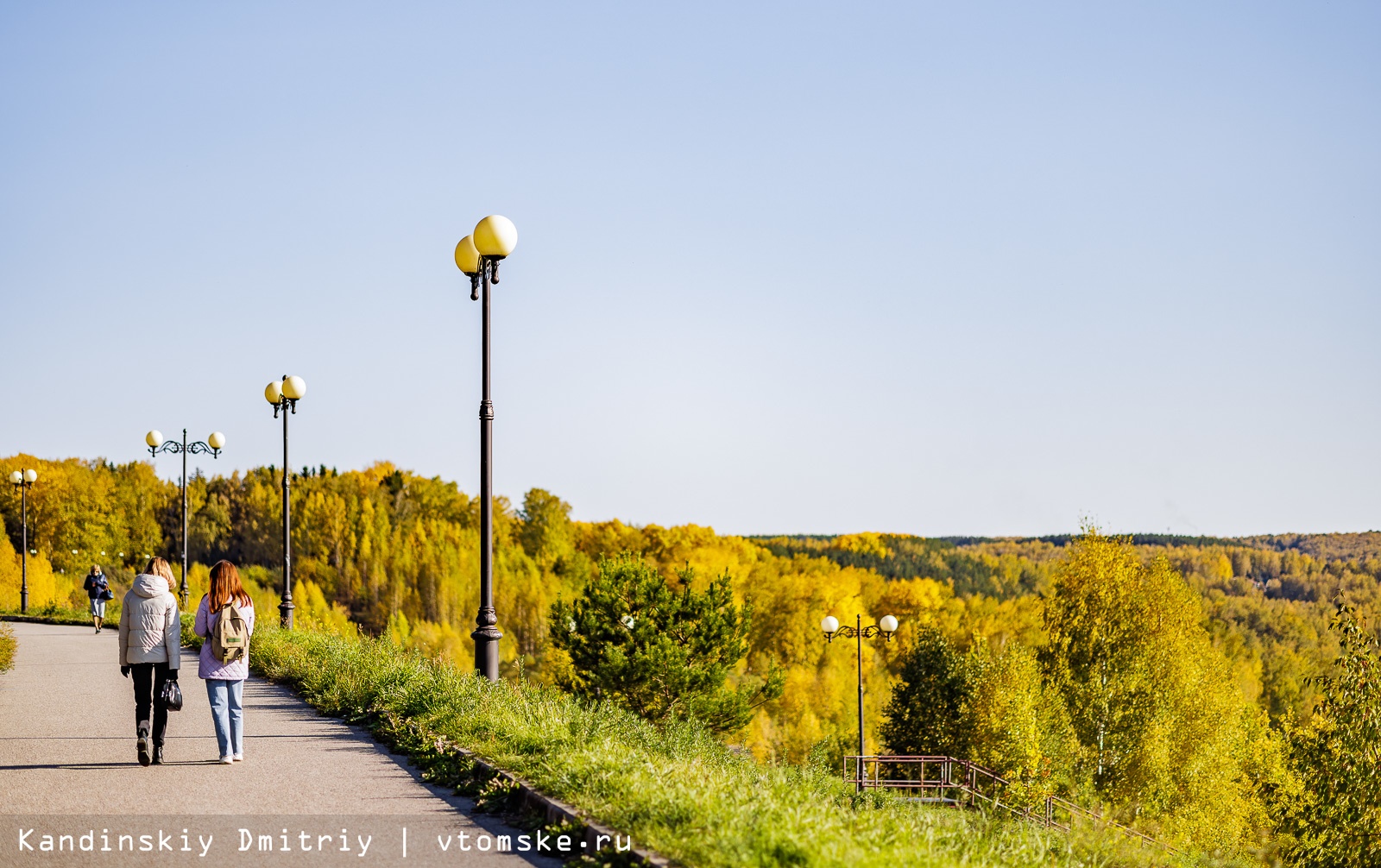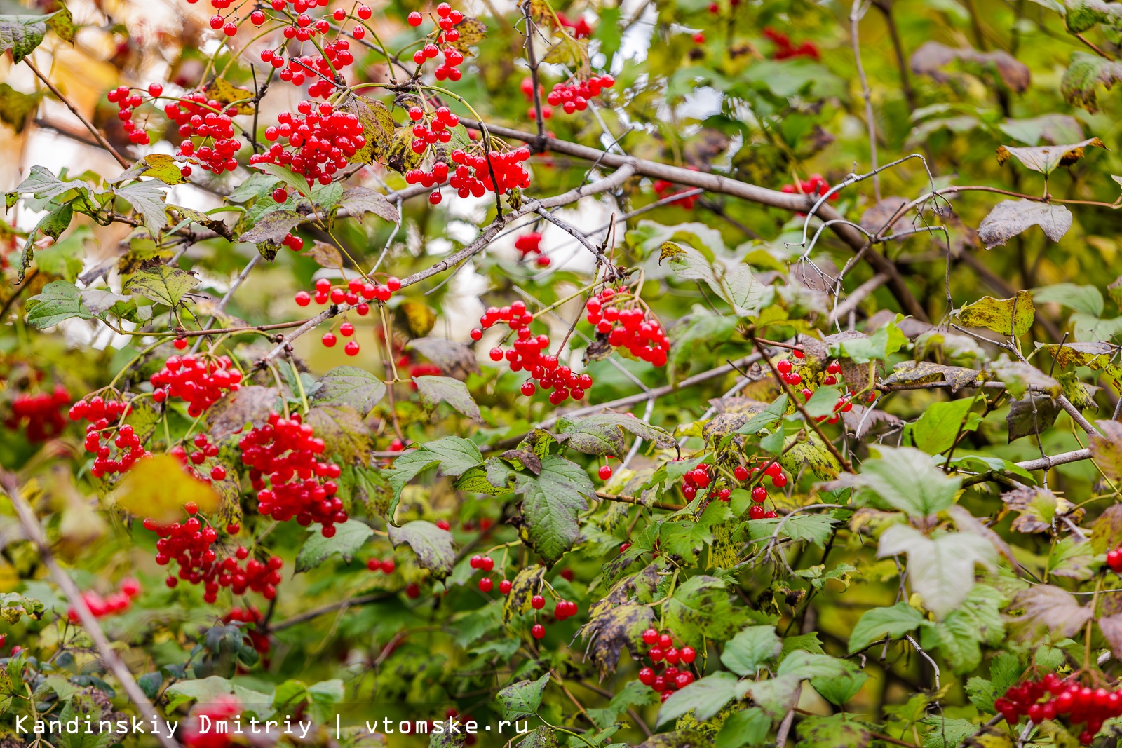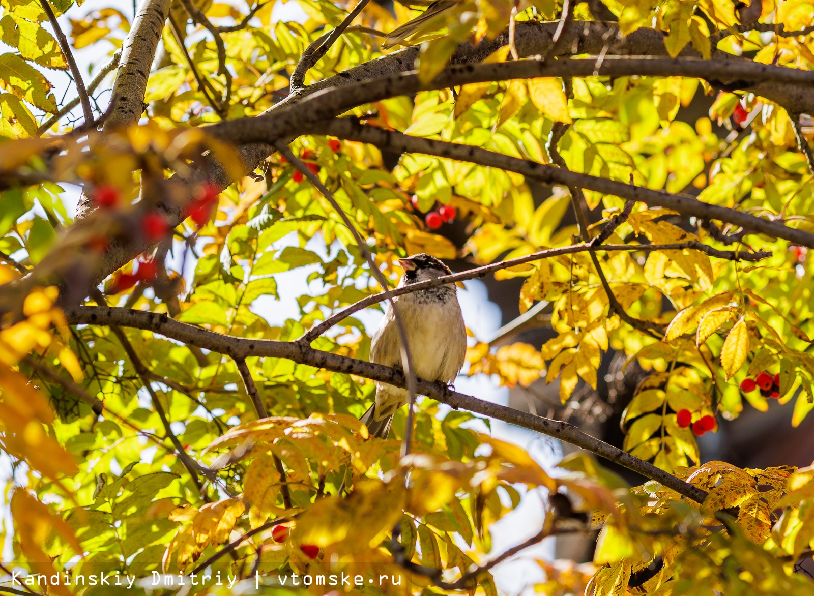 Золотая осень пришла в Томск. Деревья в парках и на улицах города меняют цвет с зеленого на желтый, оранжевый и даже красный. Листья каскадами падают вниз, укрывая землю золотым ковром; а ягоды рябины становятся все более красными.