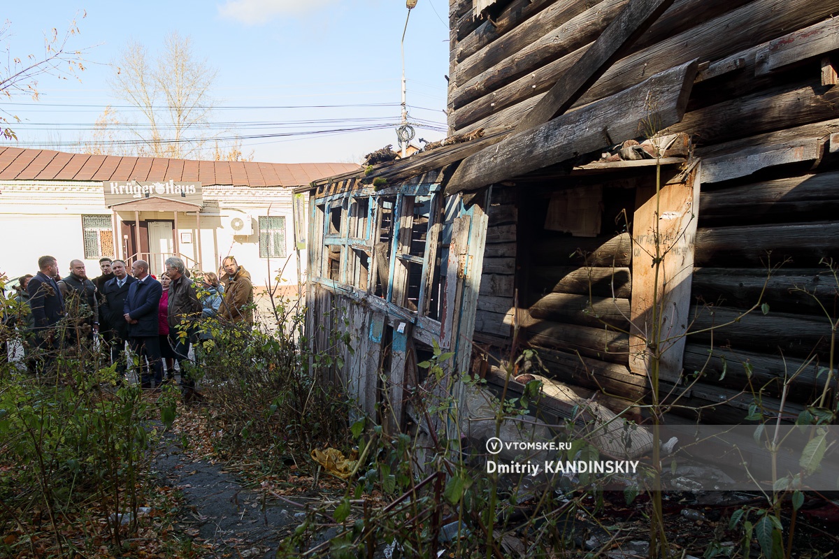 16 октября мэр Томска Дмитрий Махиня провел выездное рабочее совещание по объектам программы «Дом за рубль». Кроме дома на Батенькова, он также посетил территорию усадьбы на улице Тверской, где идет восстановление дома с грифонами.