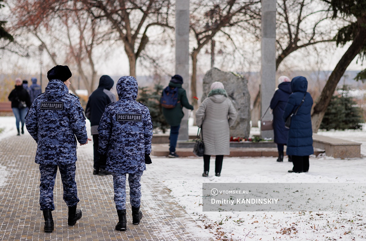 Несмотря на отмену централизованной акции, днем в понедельник томичи приходят в Сквер памяти жертв политических репрессий, чтобы возложить цветы, сообщают журналисты vtomske.ru. На месте дежурят сотрудники Росгвардии.
