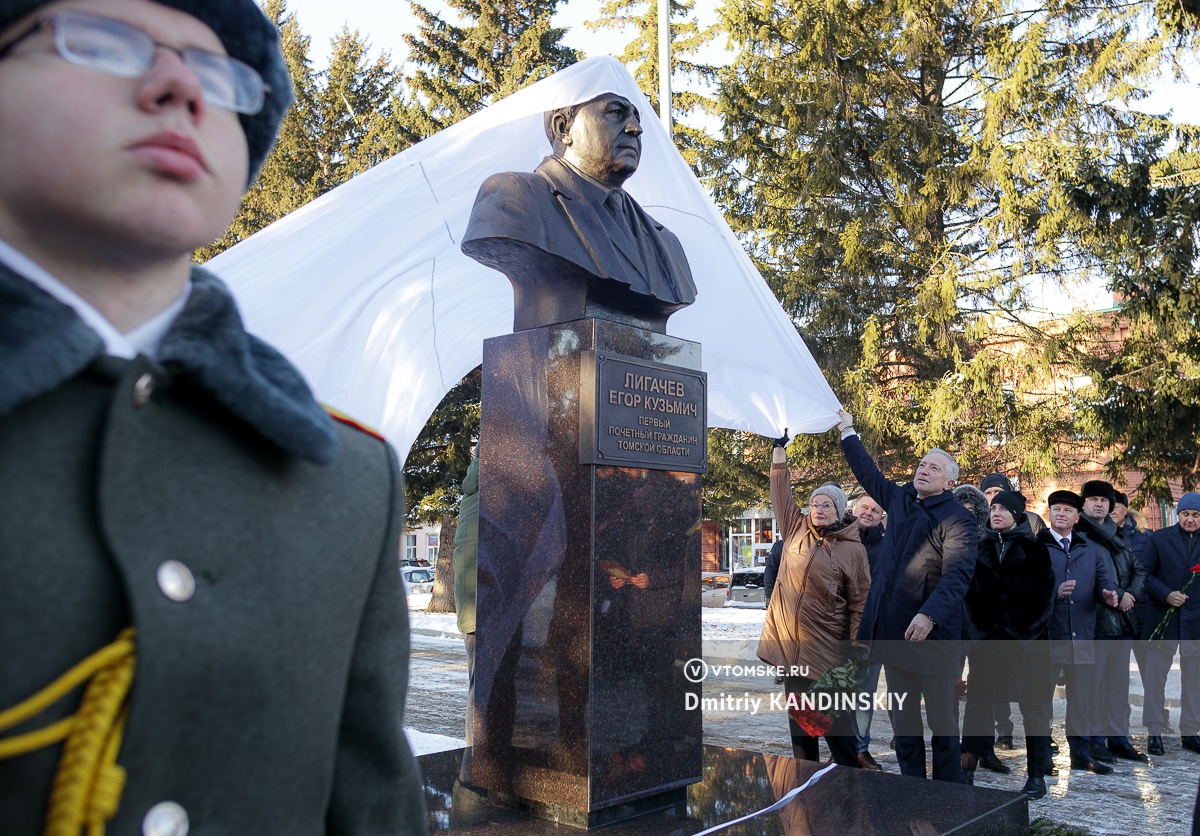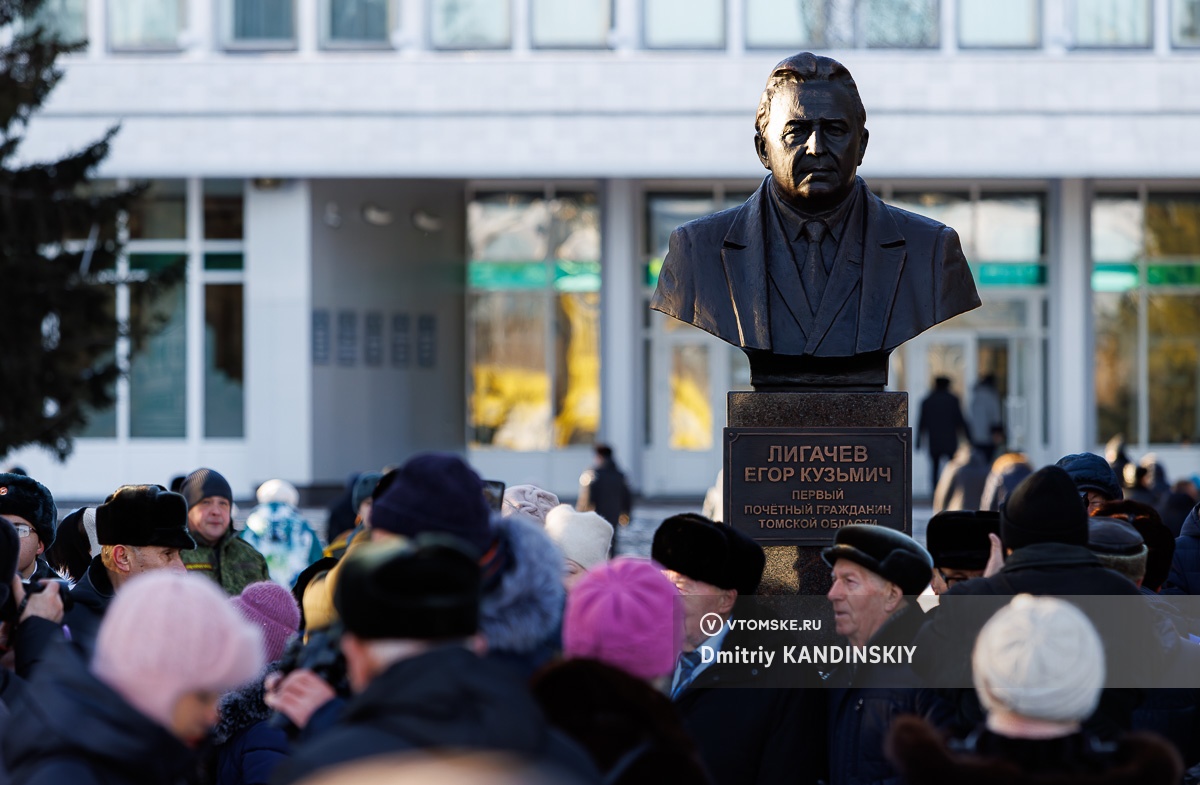 Бюст первого секретаря Томского обкома КПСС Егора Лигачева открыли напротив здания администрации Томской области. Аллея, где находится памятник, тоже теперь носит имя Лигачева.