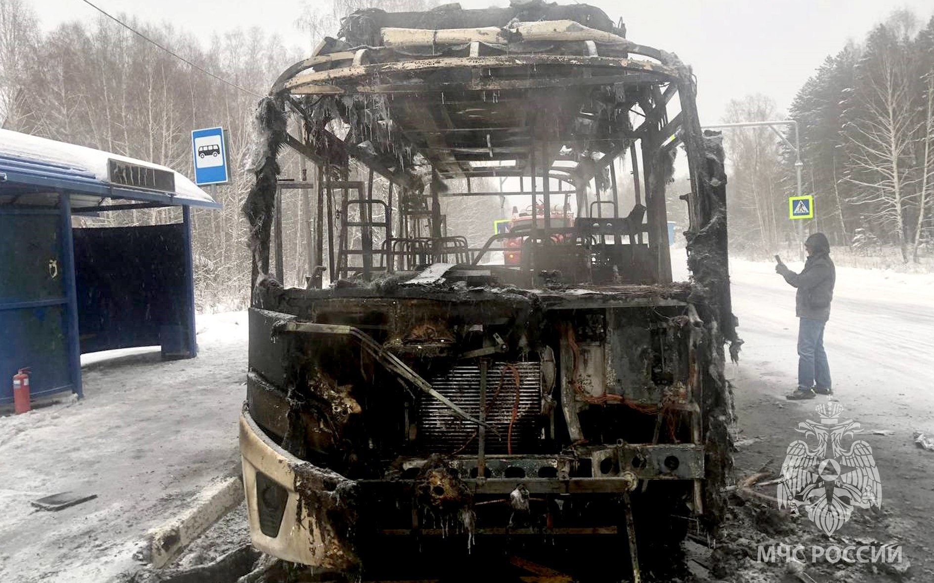 Позднее в МЧС Томской области сообщили, что избежать последствий пожара для транспортного средства не удалось — автобус выгорел полностью.