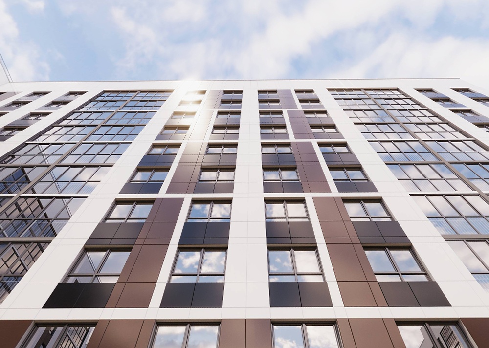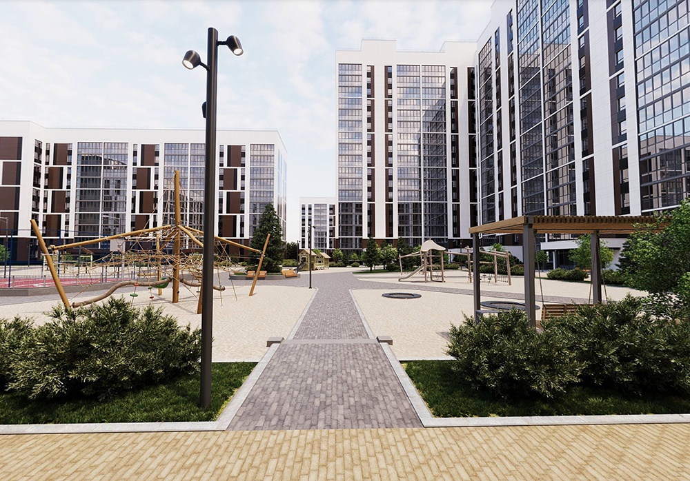 Реализация принципа «дворы без машин» позволяет благоустроить придомовые территории в формате, характерном для жилья комфорт-класса. Фасад стал лаконичным, архитектурно выверенным и более выразительным. Улучшение внешнего вида и долговечность фасадных решений обеспечивается облицовкой плитами, подобранными в соответствии с дизайнерской концепцией жилых комплексов.