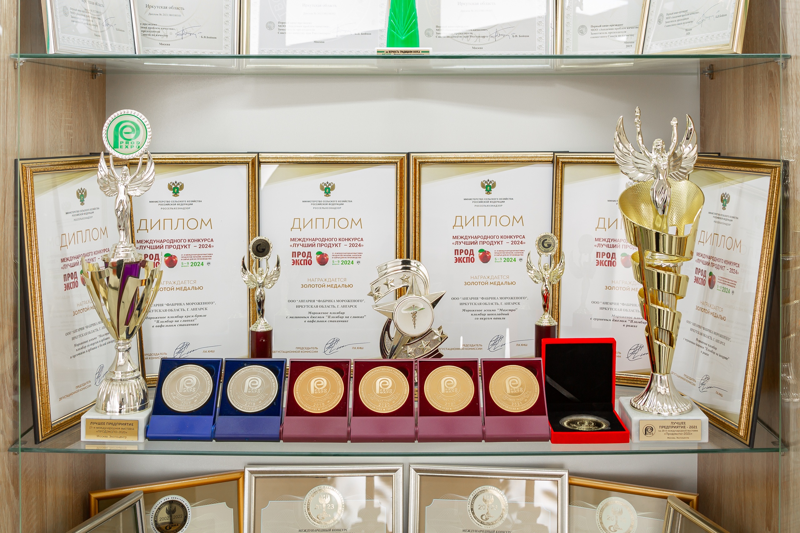 Кроме того, фабрика получила свидетельство и золотую медаль в отборочном этапе международного конкурса «Лучшие товары и услуги — ГЕММА-2023», была отмечена дипломом на региональном конкурсе «Иркутское качество» в конце мая 2024 года и получила диплом первой степени в региональном этапе конкурса «100 лучших товаров России» за серию мороженого «Пломбир на сливках».