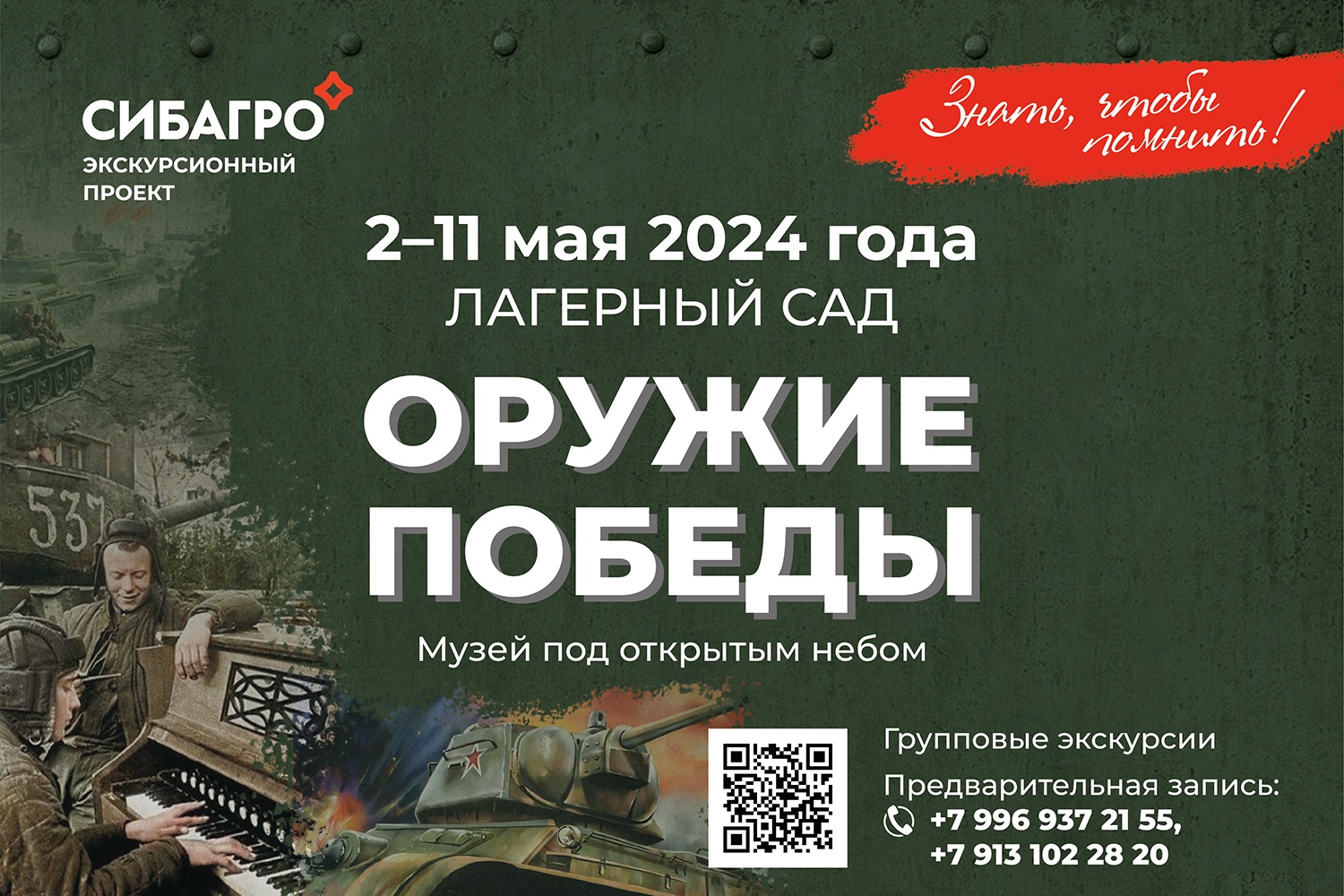 Со 2 по 11 мая в Лагерном саду начнет свою работу музей под открытым небом «Оружие Победы». В экспозиции — 23 единицы легендарной бронетанковой и противовоздушной техники и орудий времен ВОВ, 19 из которых восстановила и отреставрировала компания «Сибагро».
