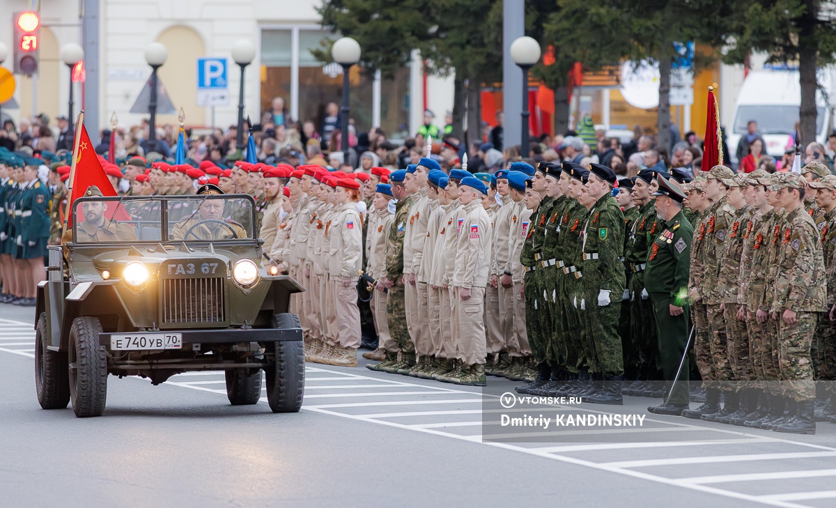 После торжественных речей на проспект Ленина, согласно сценарию, выедет военная техника времен Великой Отечественной войны, в том числе танки Т-26, Т-34, самоходная артиллерийская установка (СУ-100), боевая машина реактивной артиллерии (БМ-13), известная как «Катюша», грузовик ГАЗ-ММ (полуторка). В параде будут принимать участие и более 20 единиц ретротехники времен ВОВ. На репетиции боевой техники не было, сообщают журналисты vtomske.ru, ее можно будет увидеть 9 Мая: сначала на параде, а потом на выставке «Оружие Победы» в Лагерном саду.