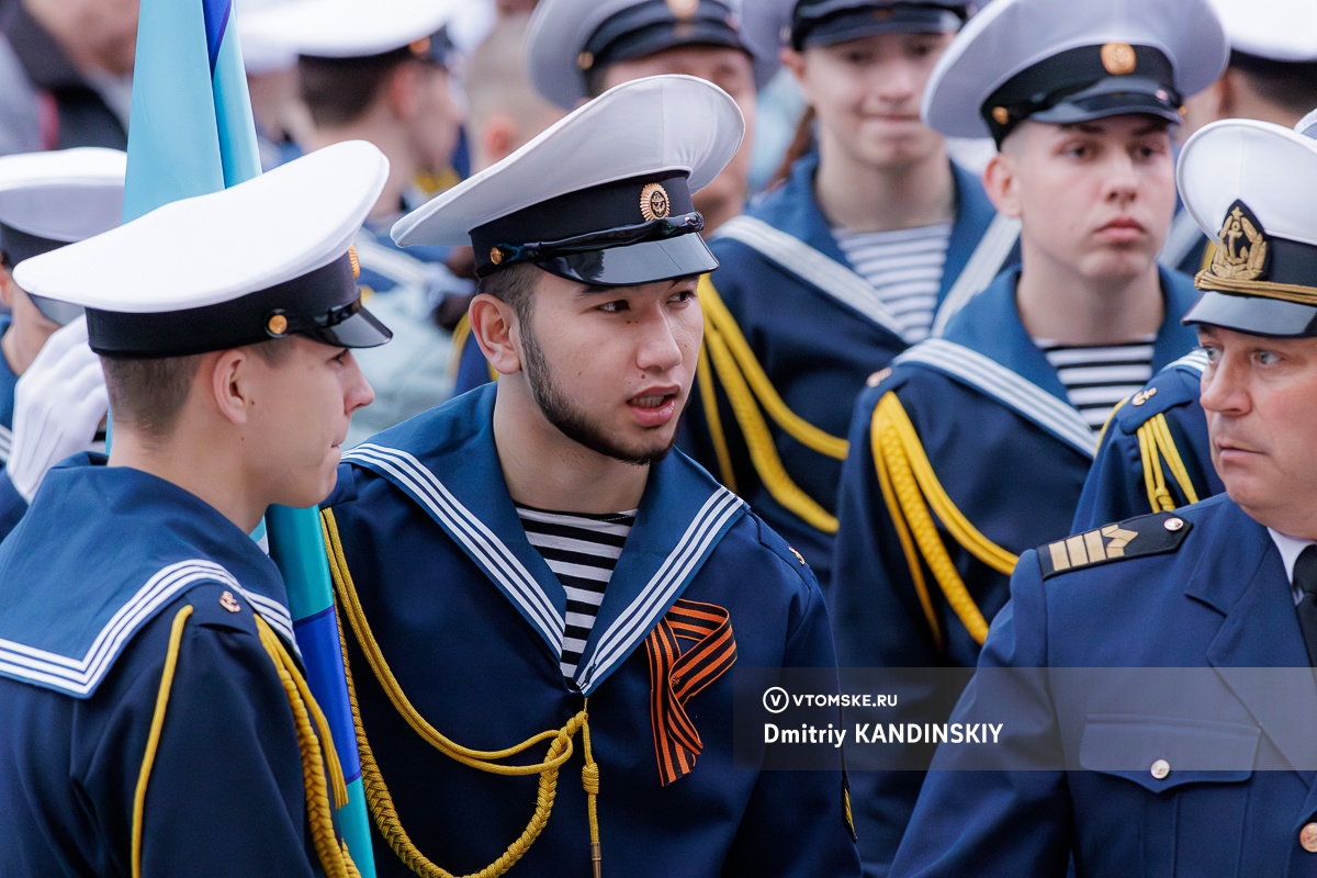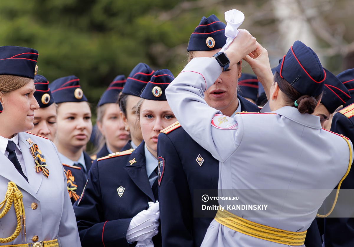 Далее начнется шествие, его по традиции откроет сводный отряд барабанщиков. В колонне пройдут учащиеся кадетского корпуса, техникума водного транспорта и судоходства, юнармейцы (несколько парадных расчетов), ученики Школы безопасности, юные казачата, учащиеся военных учебных центров при ТГУ и ТПУ, представители МВД, МЧС, ФССП, ФСИН, Росгвардии и другие. Впервые в этом году томичи увидят женский парадный расчет, состоящий из сотрудниц полиции.
