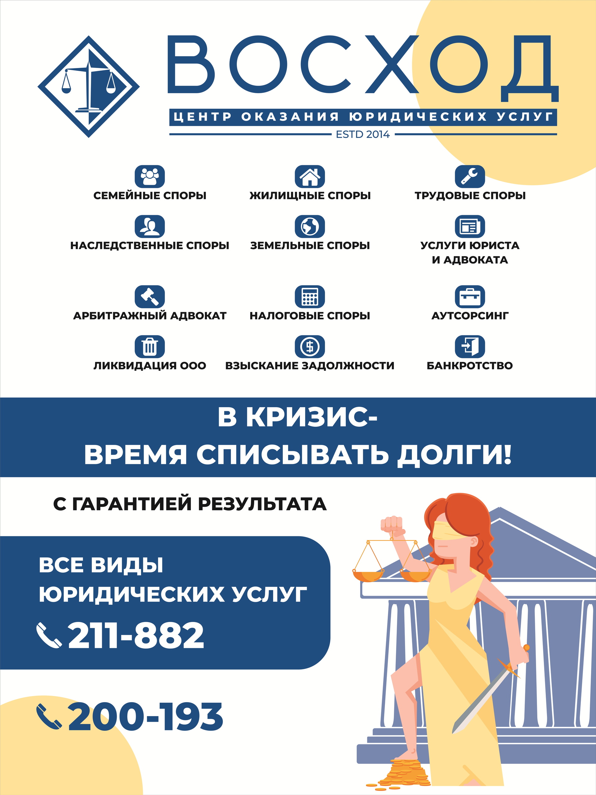 *Акция по предоставлению бесплатных юридических консультаций продлится до 31 августа 2024 года. Подробности уточняйте у специалистов «Восхода».