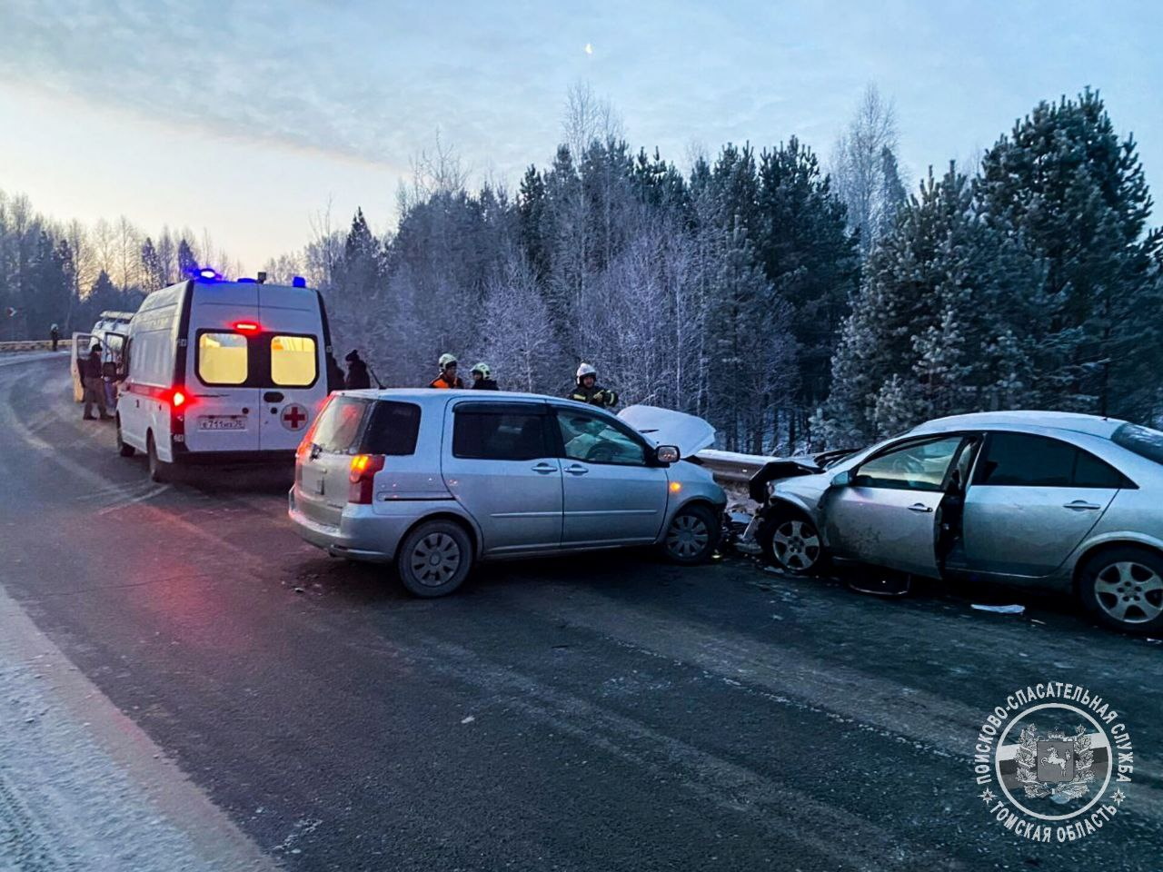 Авария произошла рано утром 25 декабря. Судя по кадрам, опубликованным ПСС, произошло лобовое столкновение.