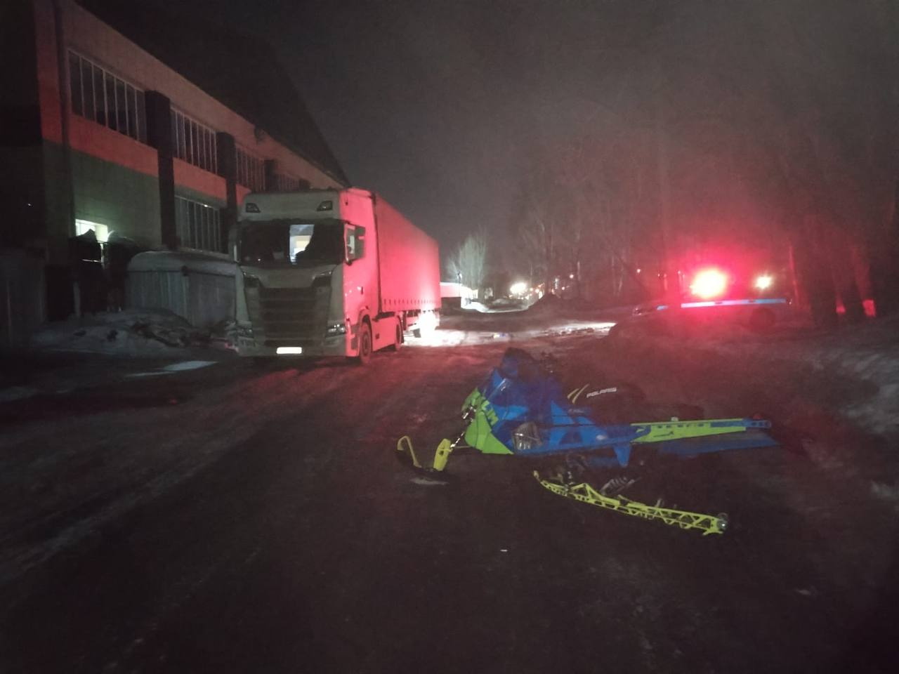 По предварительной информации, 25-летний мужчина-водитель горного снегохода Polaris Pro не справился с управлением и врезался в стоящий грузовой автомобиль Scania с полуприцепом. Грузовик был припаркован параллельно краю проезжей части.