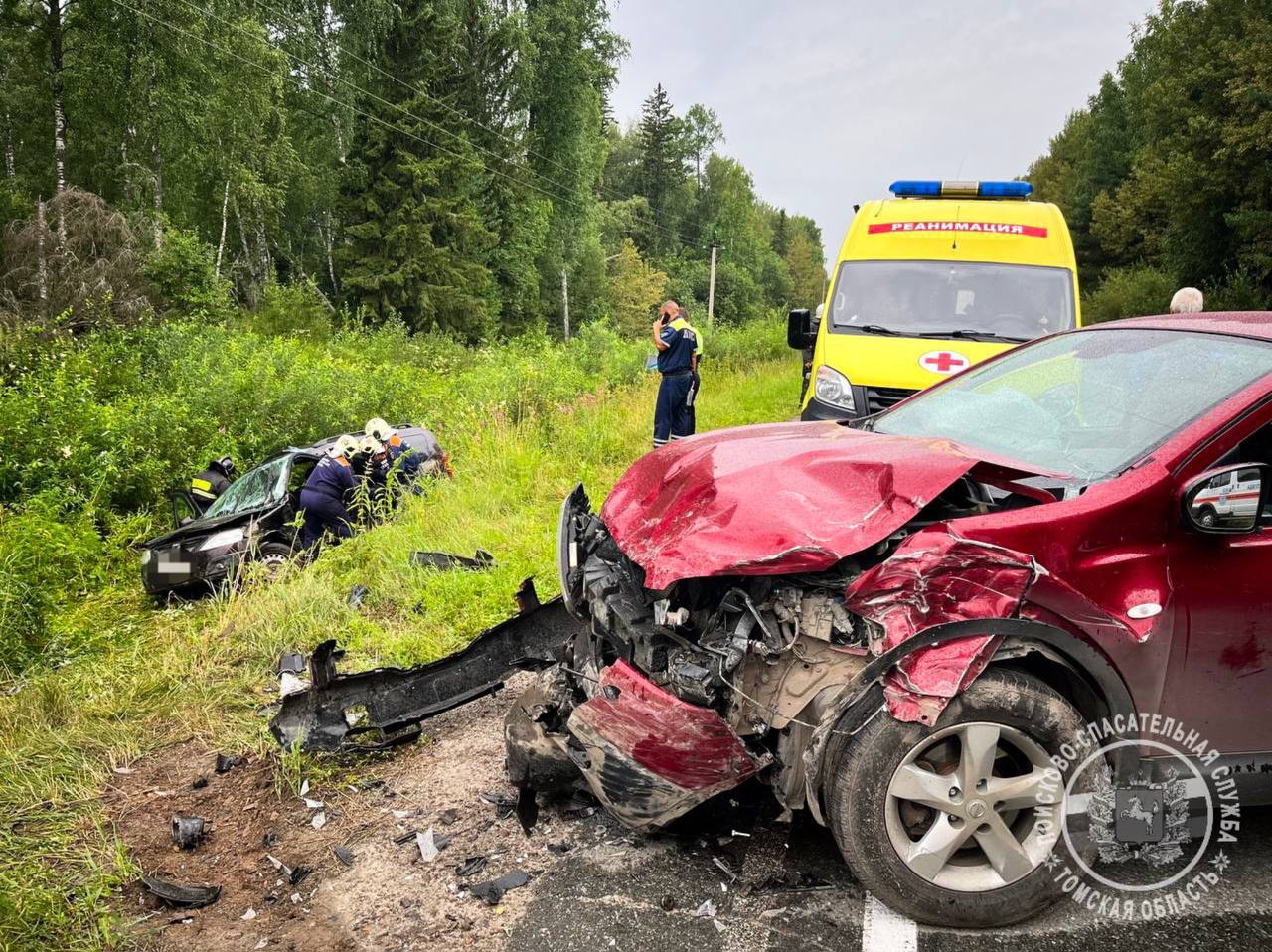 Nissan и Lada столкнулись под Томском. Водители госпитализированы, есть и другие пострадавшие