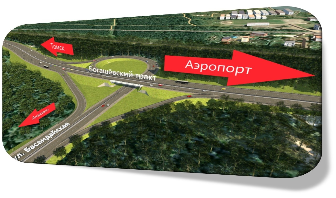 Проектом предлагается на участке от 76-м километра железной дороги до подъезда к поселку Геологов увеличить количество полос движения до четырех. А на месте существующего примыкания улицы Басандайской к Богашевскому тракту устроить развязку.