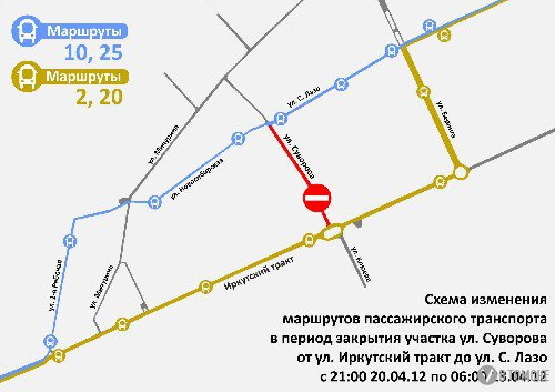 Автобусы №№ 2 и 20 поедут от ОКБ по маршруту улица Сергея Лазо — Беринга — Иркутский тракт — Пушкина — Кузнечный взвоз и далее как обычно.