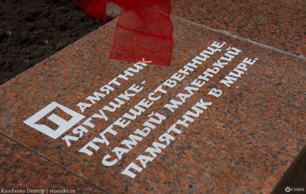 Новый памятник теперь находится возле гостиницы «Томск» на проспекте Кирова, 65, в районе Привокзальной площади. Высота монумента 44 миллиметра, автор мини-скульптуры — Олег Кислицкий. «Образ лягушки лучше всего подошел для воплощения идеи самого маленького памятника. Всем известен персонаж детской сказки «Лягушка-путешественница» Гаршина, поэтому наш памятник посвящен путешественникам», — сказал Кислицкий.