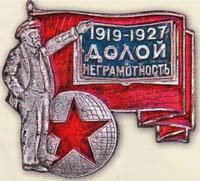 23 марта 1924 года было создано Томское губернское отделение Всероссийского общества содействия ликвидации неграмотности «Долой неграмотность». Оно одновременно выполняло и роль координатора работы разных организаций и учреждений, и вело самостоятельную практическую работу. Материальная база общества складывалась из добровольных взносов предприятий, учреждений, редакций газет, отчислений с патентов на право продажи некоторых товаров и продуктов, пополнялась членскими взносами и средствами от продажи значков, билетов на различные культурные мероприятия. Высокими были и государственные дотации обществу. Работа велась и в городах, и в деревнях. Она заключалась в создании ликвидационных пунктов, распространении учебников, вербовке кадров для обучения неграмотных, для учета их числа.