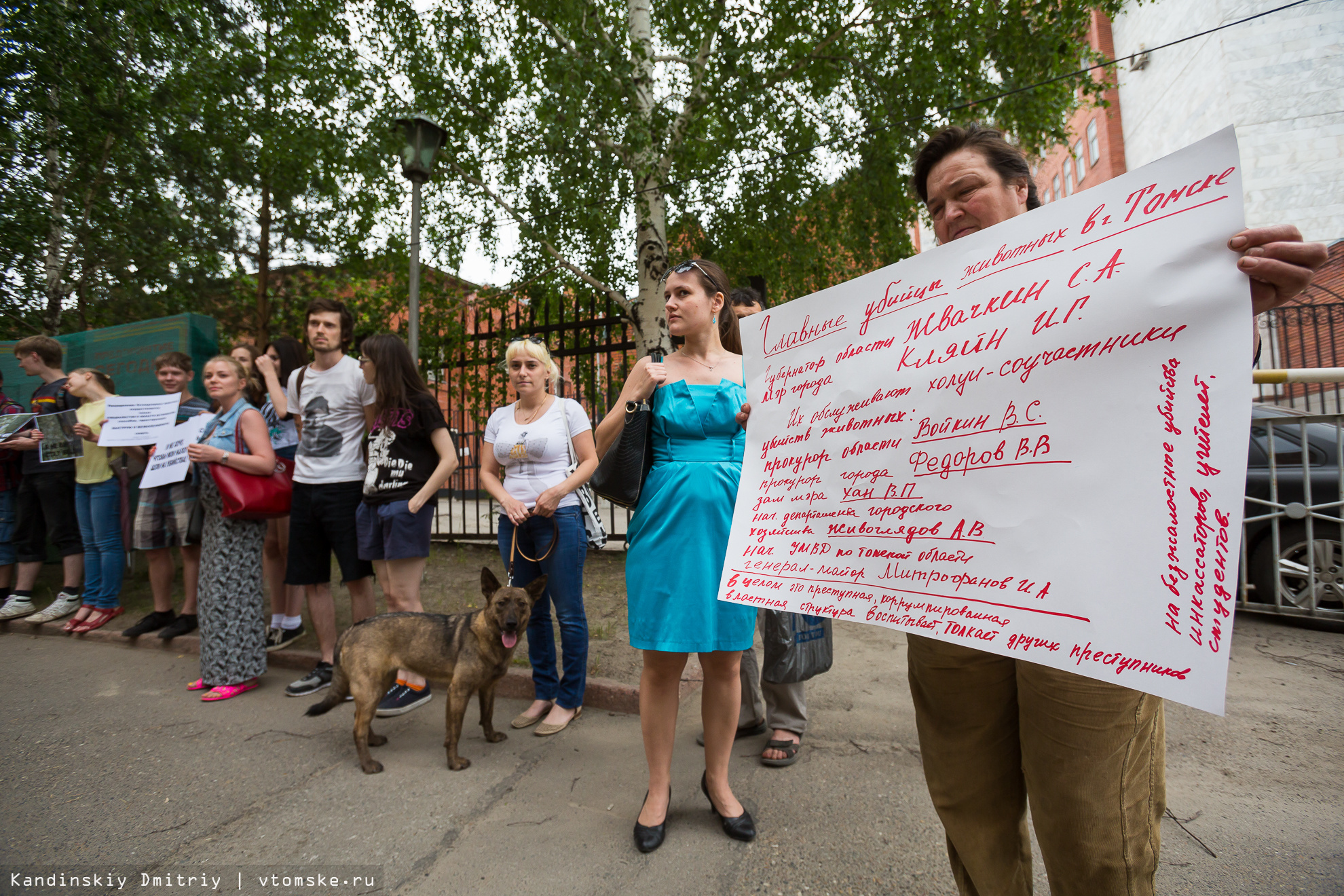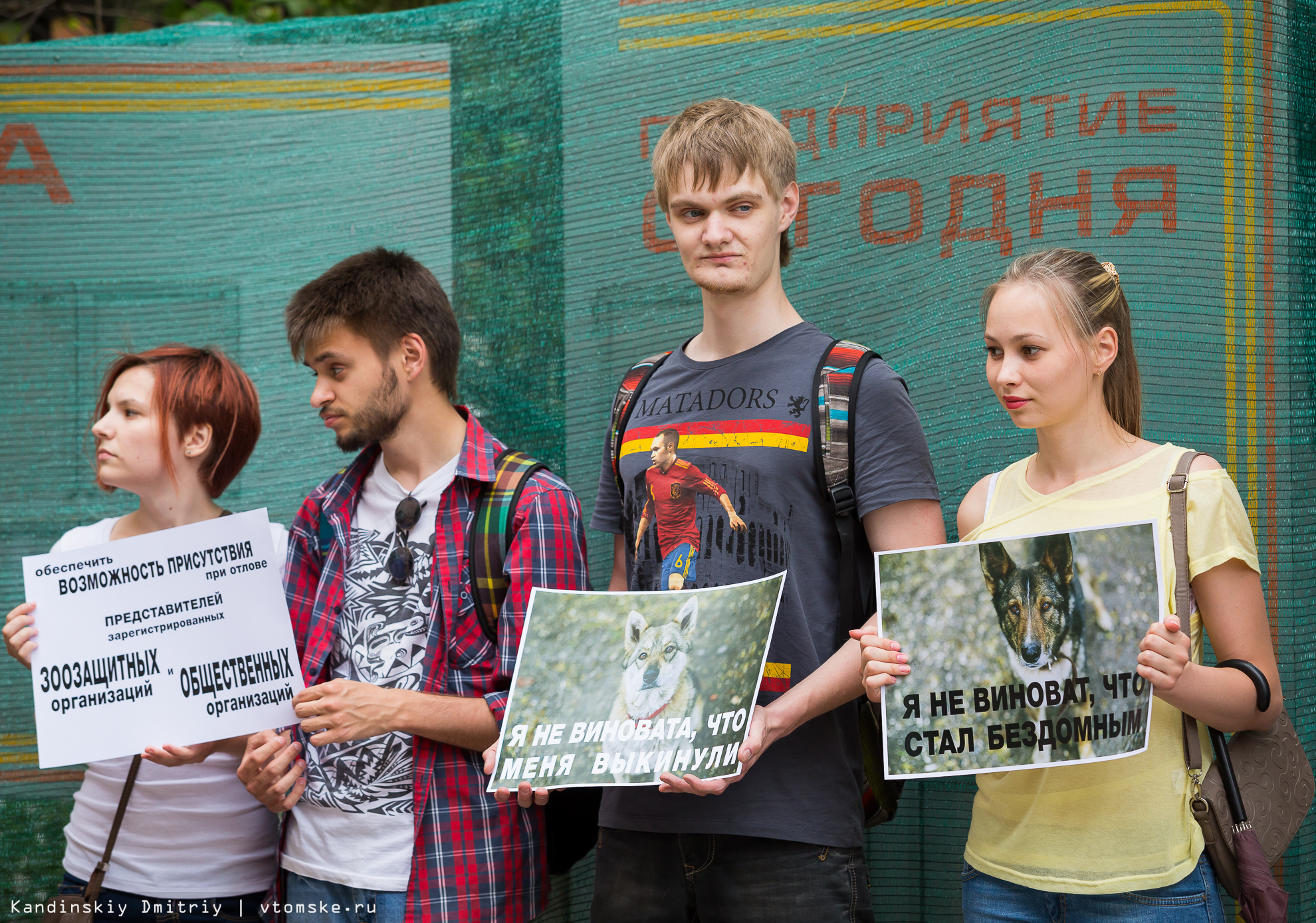 Около 40 человек с плакатами и лозунгами пришли поддержать зоозащитников. Кроме того, в пикете приняли участие и сами животные — несколько собак, в свое время взятых томичами с улицы и пунктов передержки томских зоозащитников.