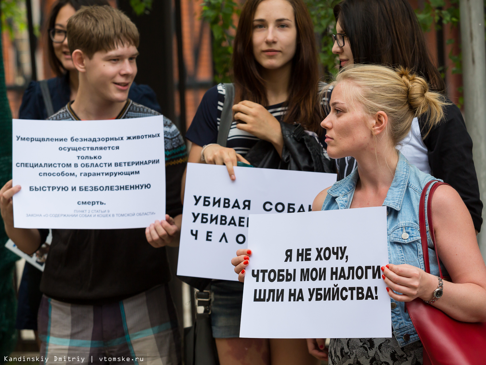«Мы недовольны сложившейся ситуацией с бездомными животными в Томске. Особенно тем, как ее пытается решить «Спецавтохозяйство». Они занимаются отстрелом собак, называя его отловом. Очень часто как раз агрессивные собаки убегают от работников «САХа», а под отстрел попадают щенки, добрые дворовые собаки, иногда и домашние любимцы. Мы предлагаем гуманную альтернативу регулирования численности бездомных животных. Не массовый отстрел, а массовую стерилизацию. Отстрел, как мы видим, проблему не решает. Если бы методы «Спецавтохозяйства» действовали бы, то город через неделю был бы чистым, а этого не происходит», — рассказала организатор пикета Наталья Тик.