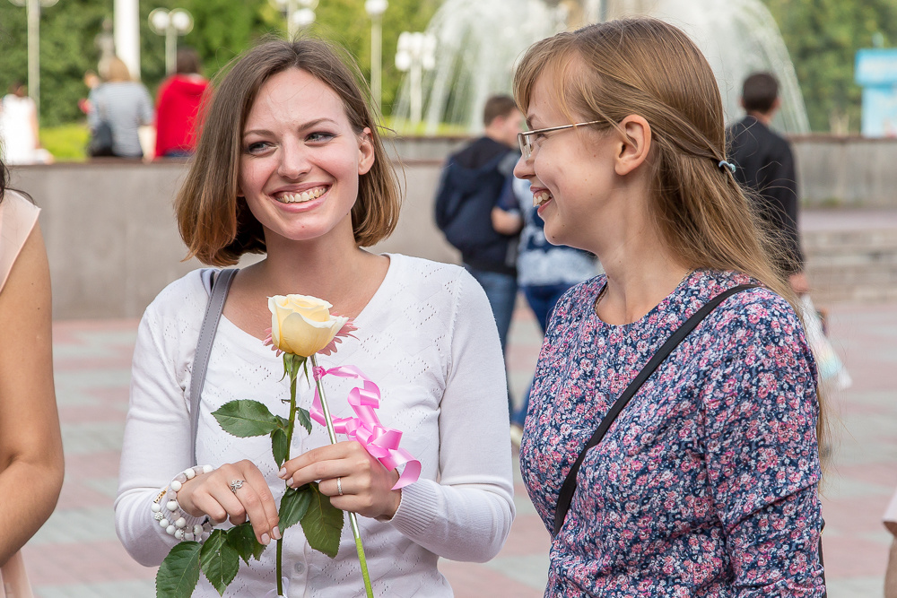 «Участницы мероприятия в красивых летних платьях дарили розы печальным, на их взгляд, женщинам, томичкам в штанах и просто той, которая понравилась. Не забывали, конечно, и про улыбки», — сообщали инициаторы флешмоба.