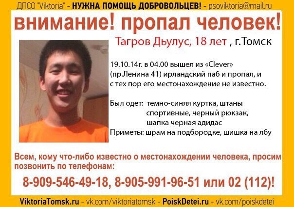 Сегодня в Томск прилетел отец пропавшего студента. Помимо полиции, в поисках принимают участие друзья Дьулуса и волонтеры поискового отряда «Viktoria».