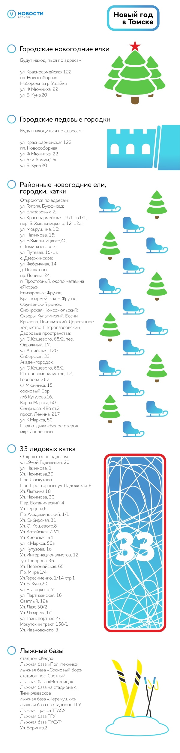 К Новому году в Томске появятся пять главных елок, 33 катка и бесплатные ледовые городки (инфографика)