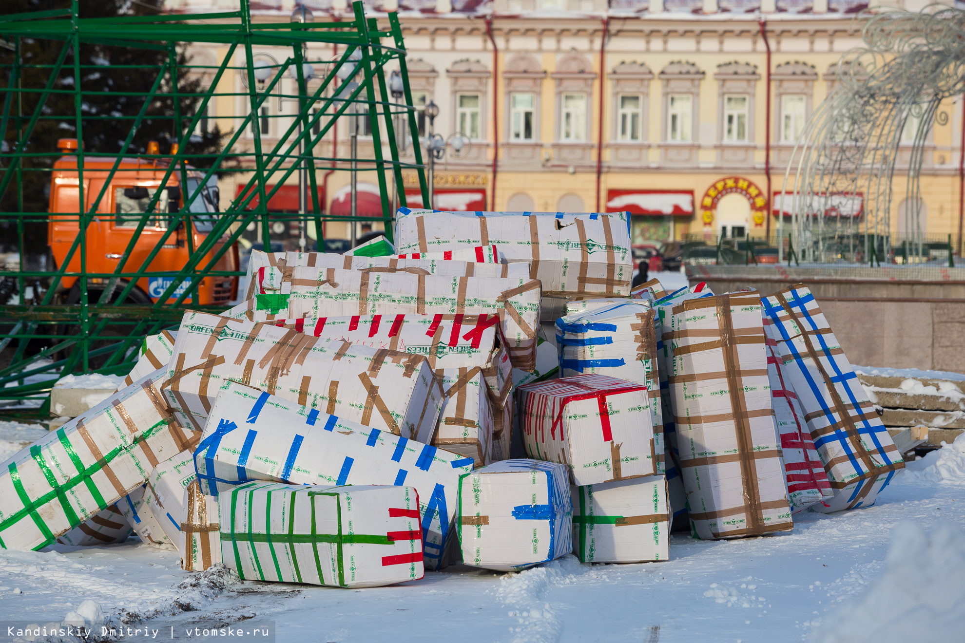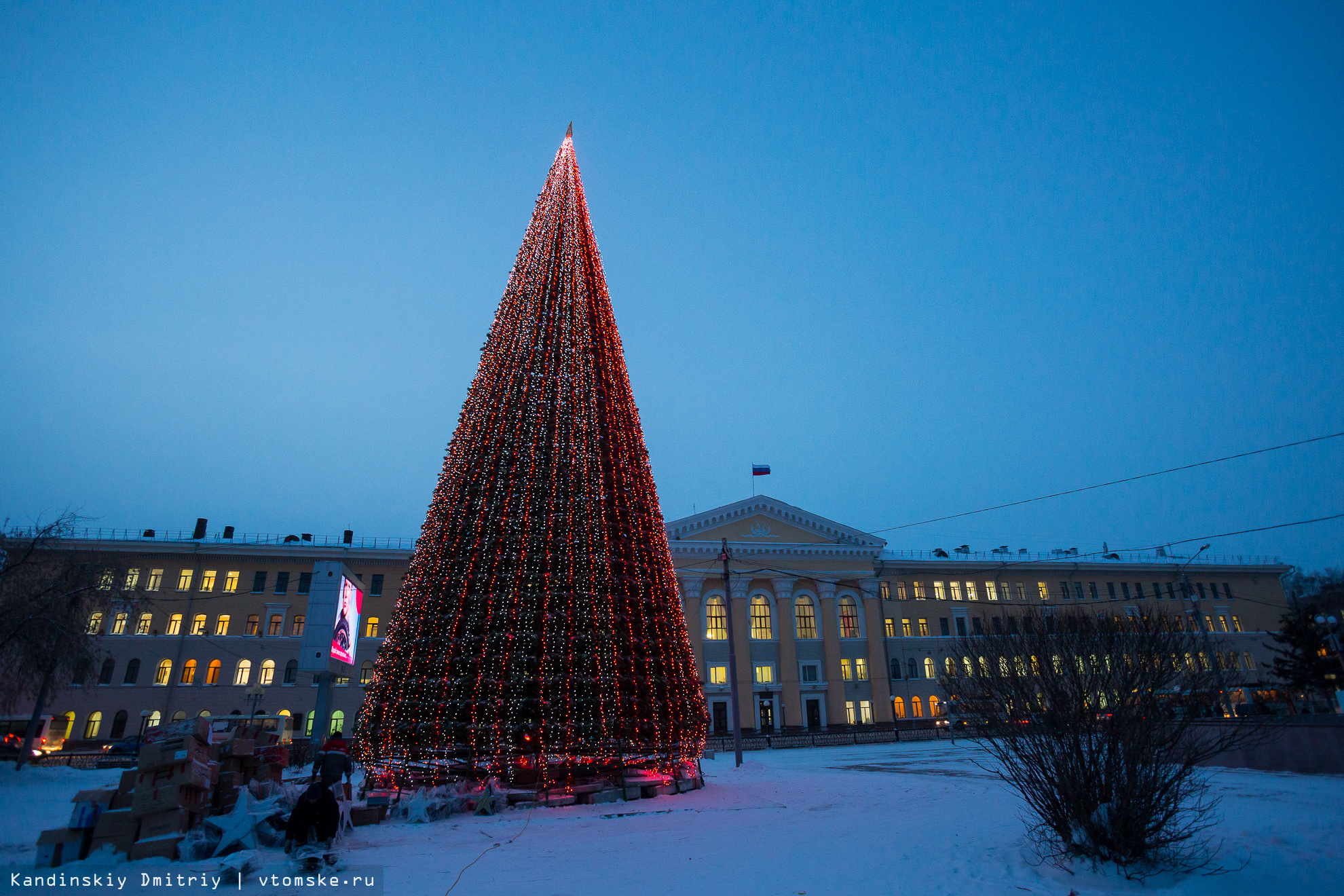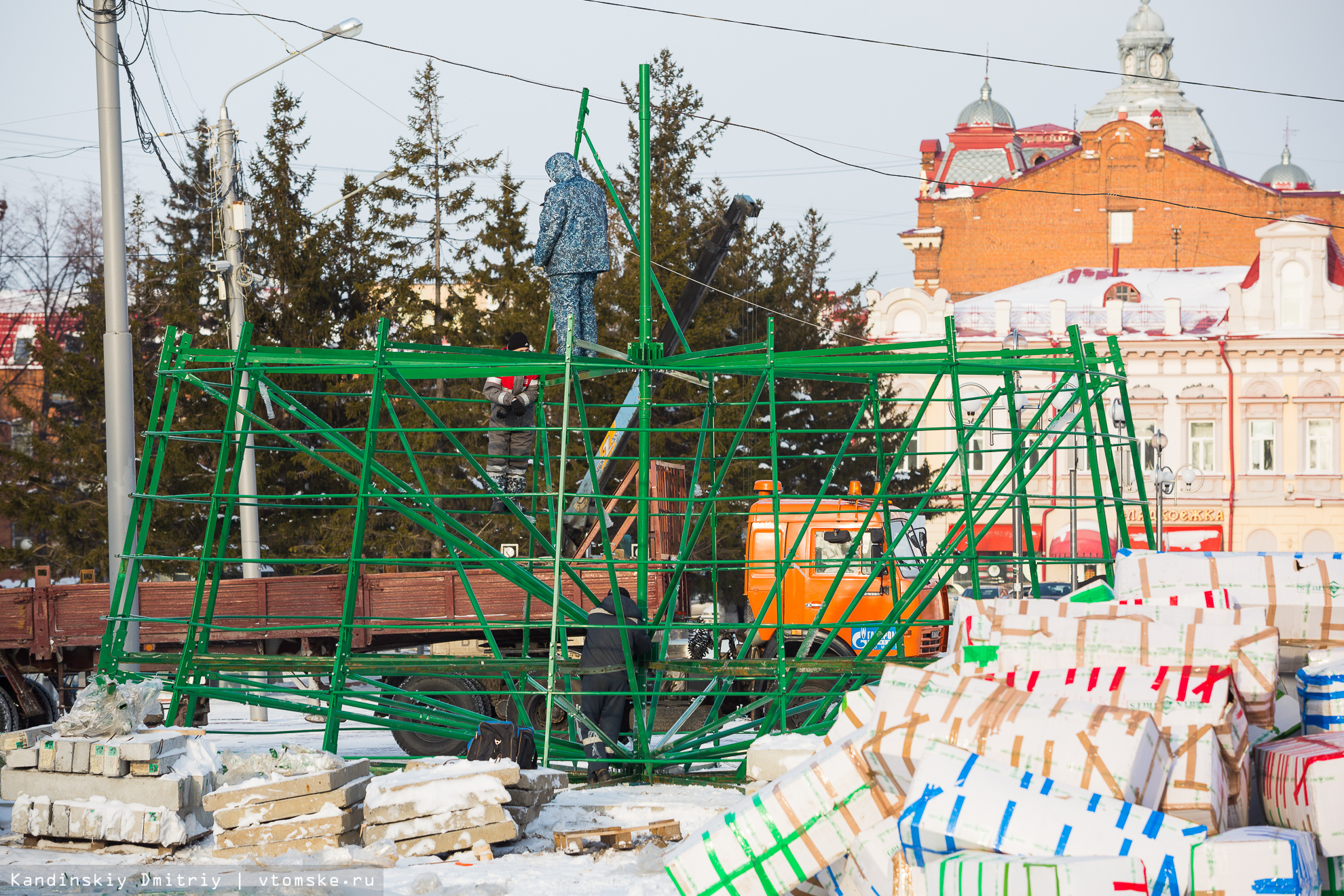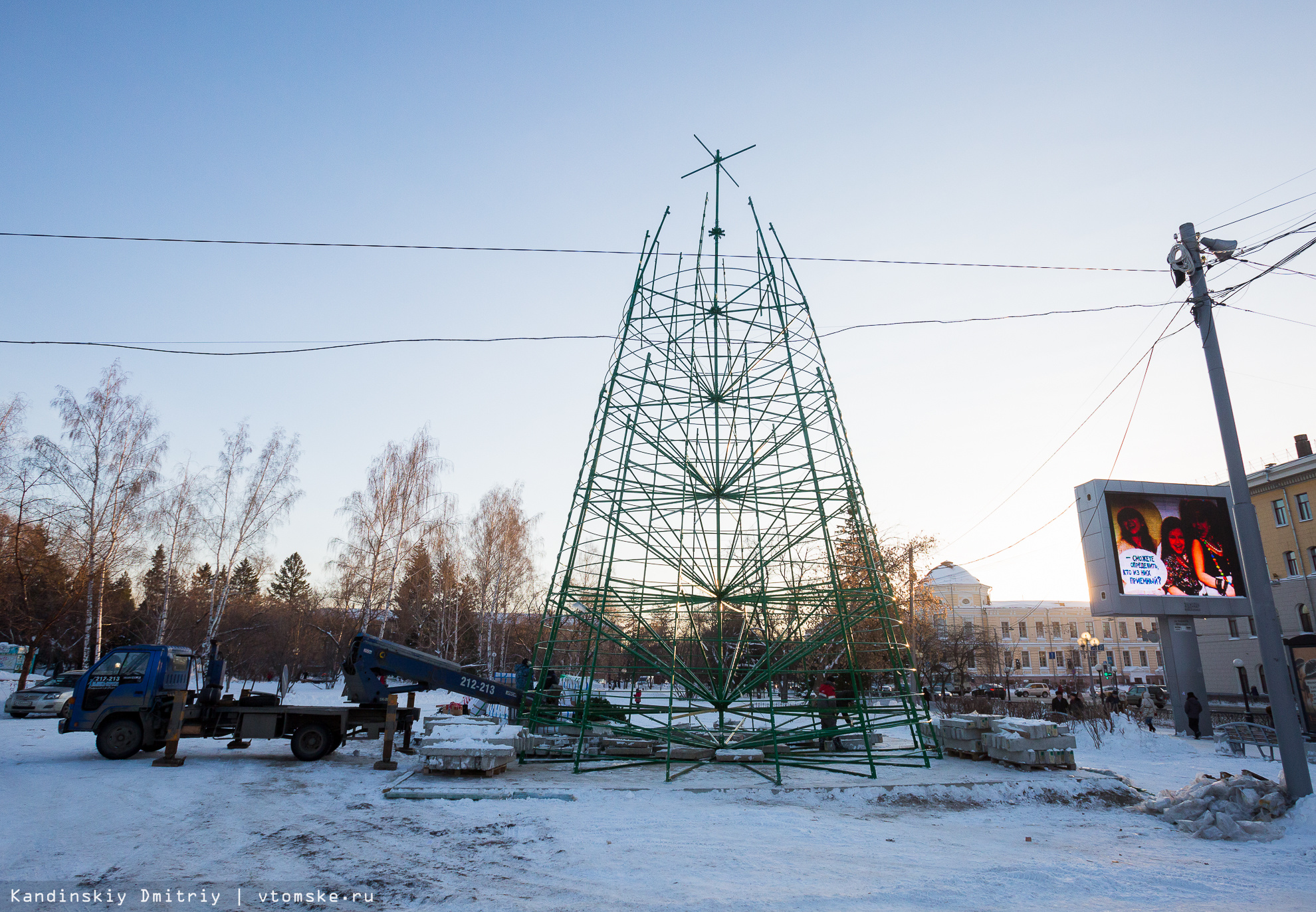 Главная елка Томска, по традиции, установлена на площади Новособорной. Ее монтаж начался 2 декабря.