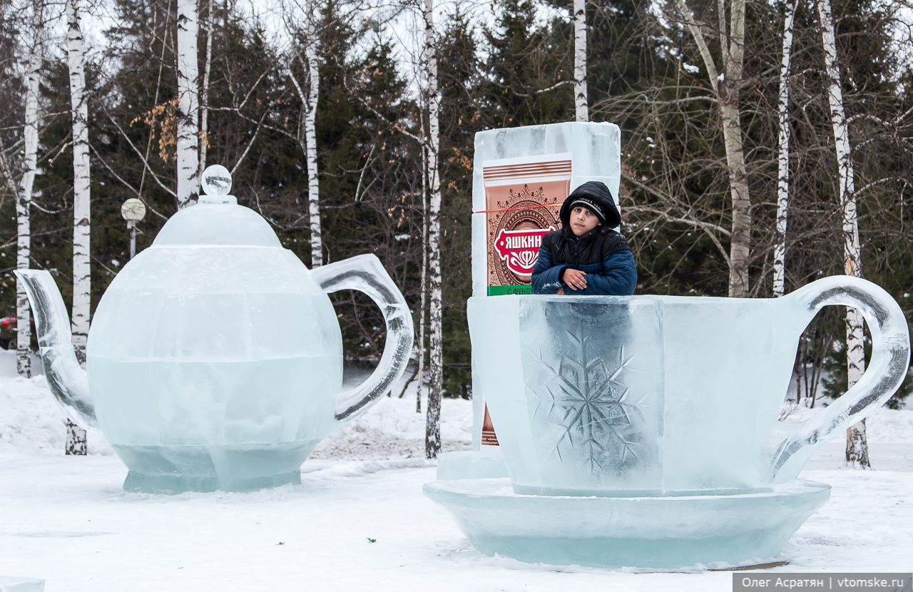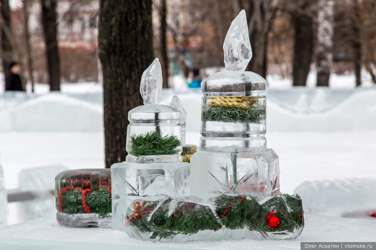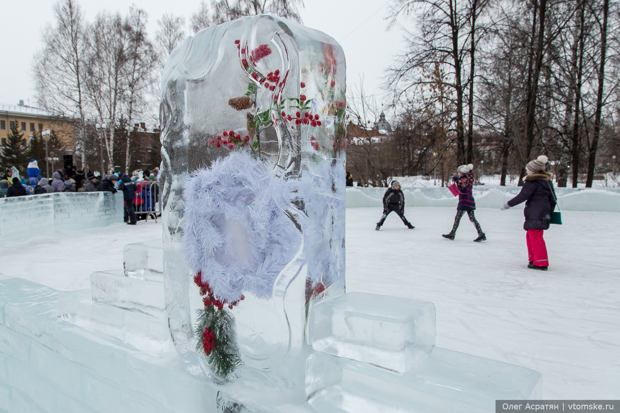 Добавим, что в городке на Новособорной можно увидеть ледовые фигуры с символикой 410-летия Томска, сфотографироваться в ледяной рамке, стилизованной под резной наличник. Также в городке установлены фигуры Жар-Птицы, Деда Мороза и Снегурочки, ледяной герб Томска высотой два метра и ледяная композиция «Я люблю Томск».