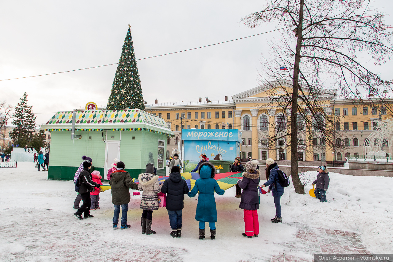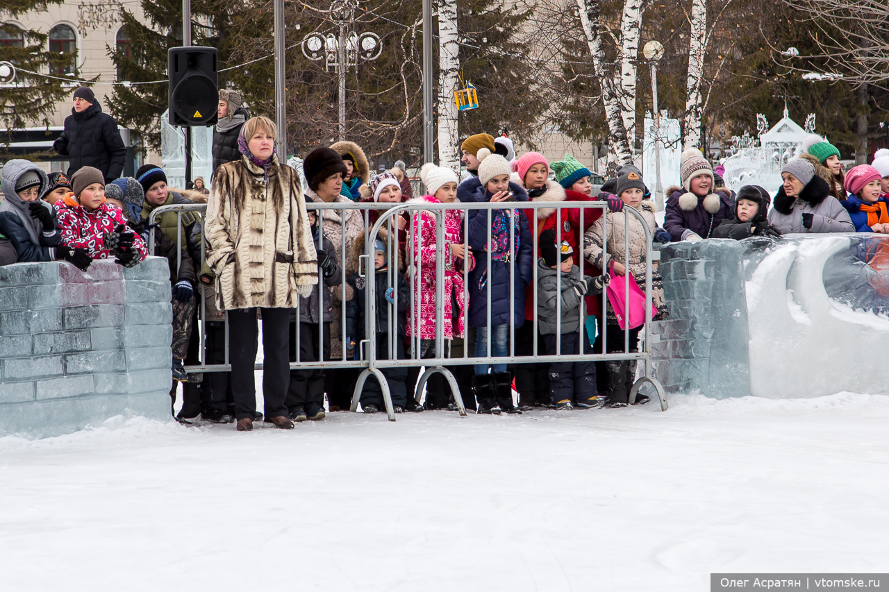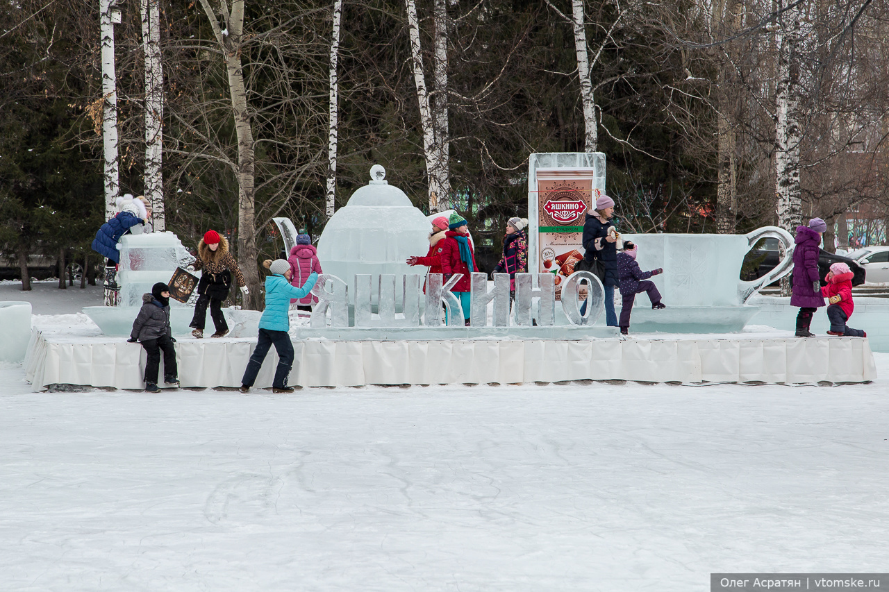 Добавим, что в городке на Новособорной можно увидеть ледовые фигуры с символикой 410-летия Томска, сфотографироваться в ледяной рамке, стилизованной под резной наличник. Также в городке установлены фигуры Жар-Птицы, Деда Мороза и Снегурочки, ледяной герб Томска высотой два метра и ледяная композиция «Я люблю Томск».