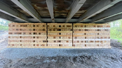Мост через реку Басандайку в Томском районе подперли шпальной клеткой