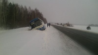 Сотрудники ДПС помогли пассажирам автобуса, съехавшего в кювет на томской трассе