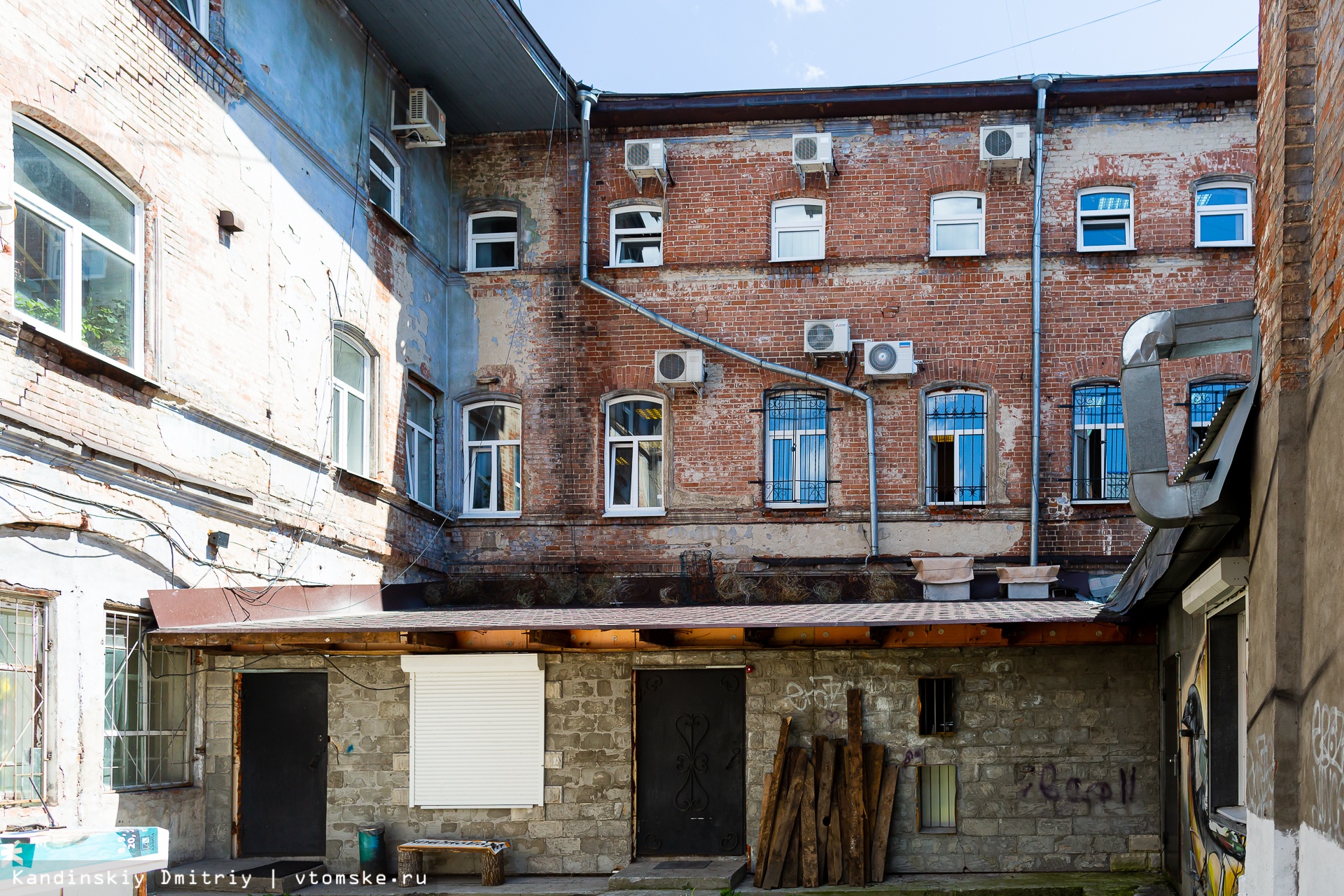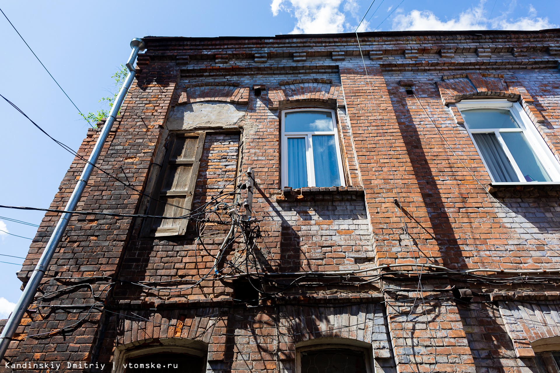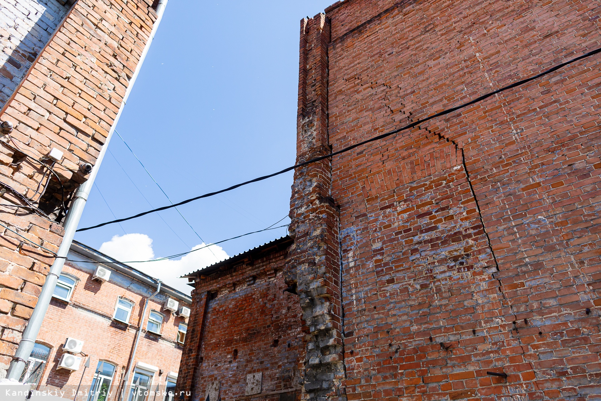 Вообще это нетипичная ситуация для кирпичных строений Томска. Обычно угроза разрушения нависает на брошенными, не эксплуатируемыми домами. Здесь же — обратная история. Объект, о котором я говорю, находится по проспекту Ленина, 78/1, и входит в комплекс разновременных зданий и строений, объединенных статусом памятника архитектуры регионального значения. В комплекс входят здания по переулку Нахановича, 3а, Ленина, 78, 78/1, 76а.