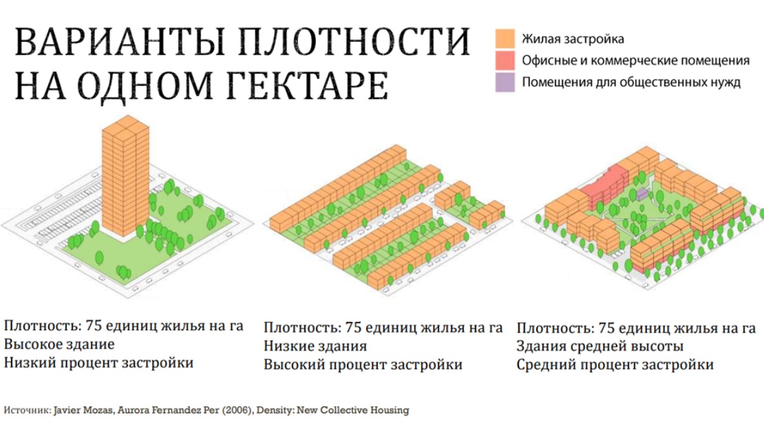 В России часты районы с мало- и среднеэтажной застройкой. А многие города уже давно строятся исключительно ввысь, но по привычной схеме, размещая здания одинаковой высоты и функционала в так называемые спальные микрорайоны. В итоге получается относительно плавное увеличение высоты застройки и плотности населения городов от центра к окраинам.